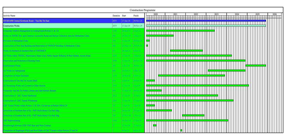 1.3.      The construction of the CKR had been divided into different sections. This Contract No. HY/2014/08 – Section of Yau Ma Tei East (YMTE) covers part of the construction activities located at Yau Ma Tei under the EP and FEP which includes: