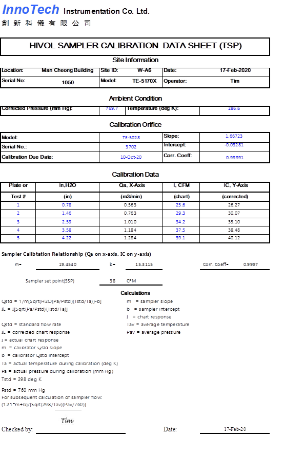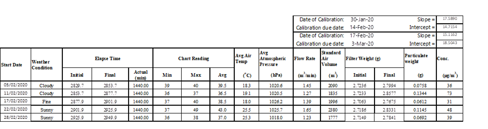 H.    Calibration Certificate (Air Monitoring)