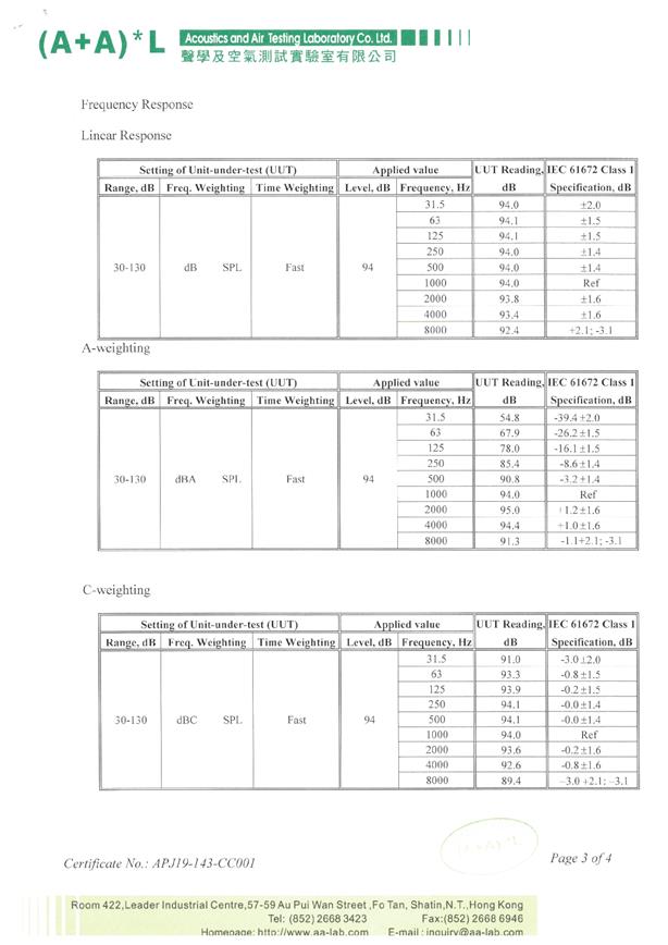 I.       Calibration Certificate (Noise)