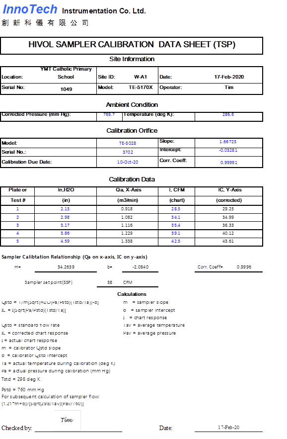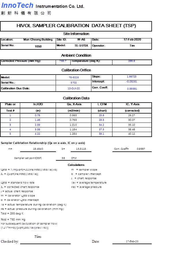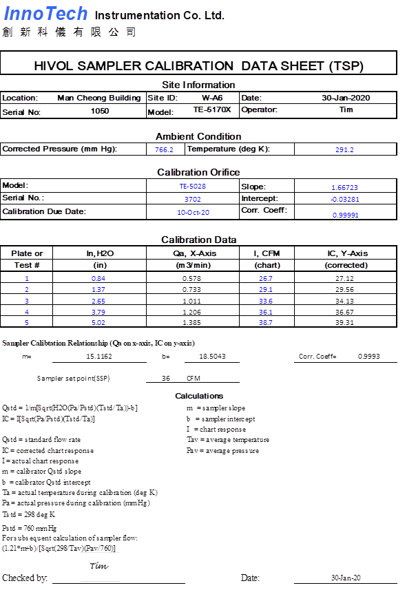 H. Calibration Certificate (Air Monitoring)
