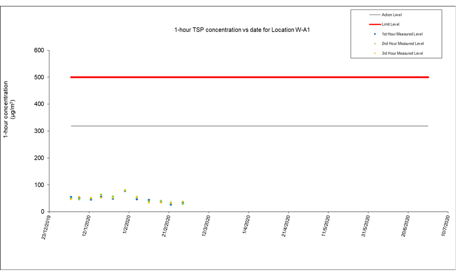 A.8 No exceedance of the Action and Limit Levels of 24-hour TSP and 1-hour TSP and construction noise monitoring were recorded during the reporting period.