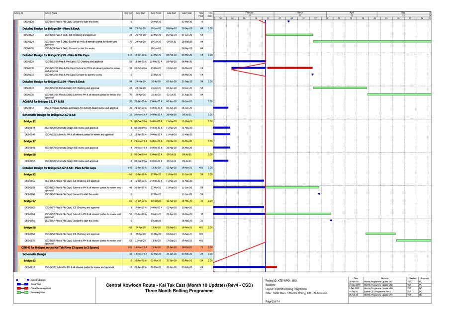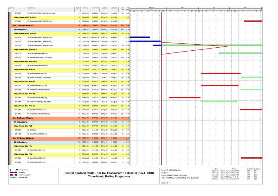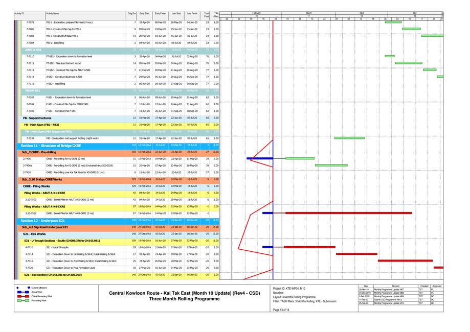 1.4. A summary of major construction activities provided by the Contractor in this reporting period is shown in Table 1.1. The construction programme is presented in Appendix B.