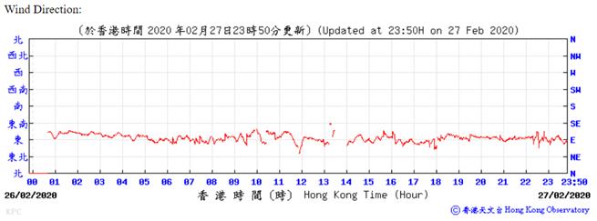WIND DIRECTION DATA FOR 3, 4, 8, 9, 14, 15, 20, 21, 26, 27 FEBRUARY 2020