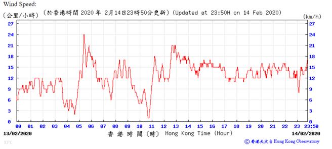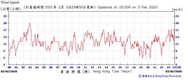 WIND SPEED DATA FOR 3, 4, 8, 9, 14, 15, 20, 21, 26, 27 FEBRUARY 2020