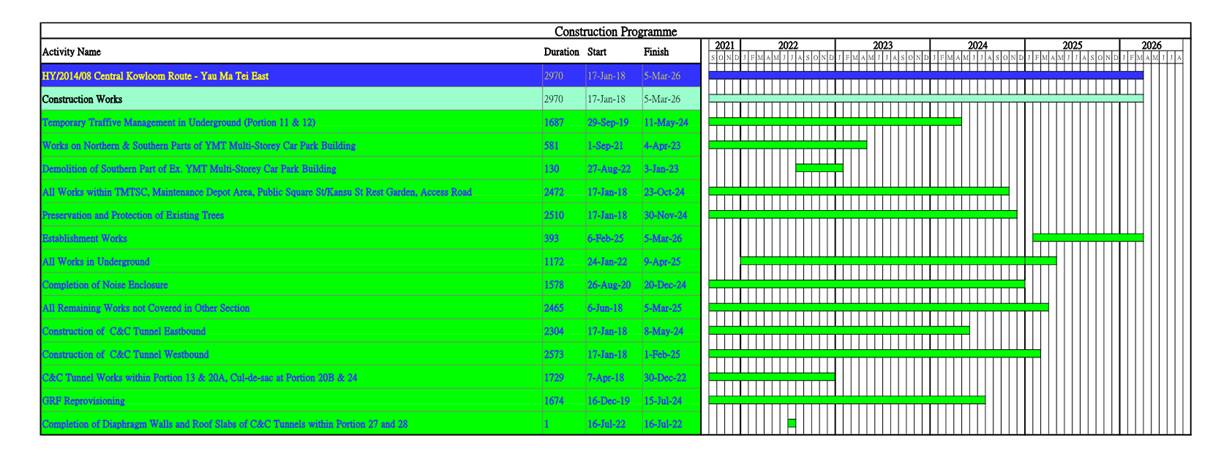 v. Construction of civil provisions and coordination with the contractor of Central Kowloon Route - Tunnel Electrical & Mechanical contract