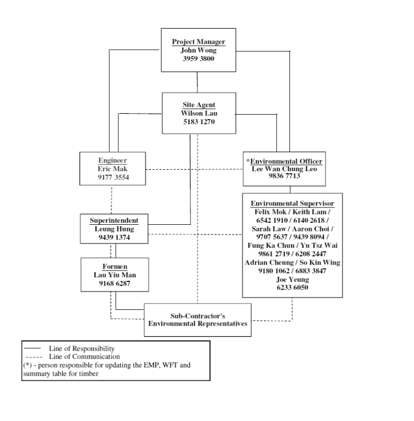 1.5. The project organisational chart specifying management structure and contact details are shown in Appendix C.