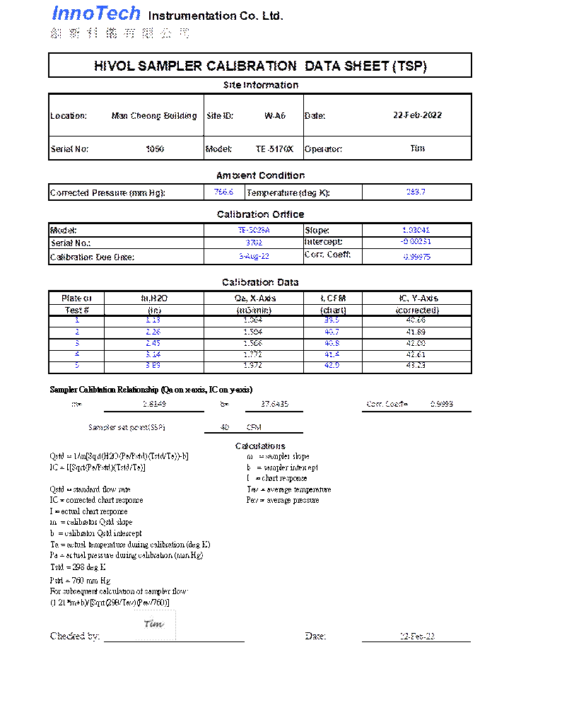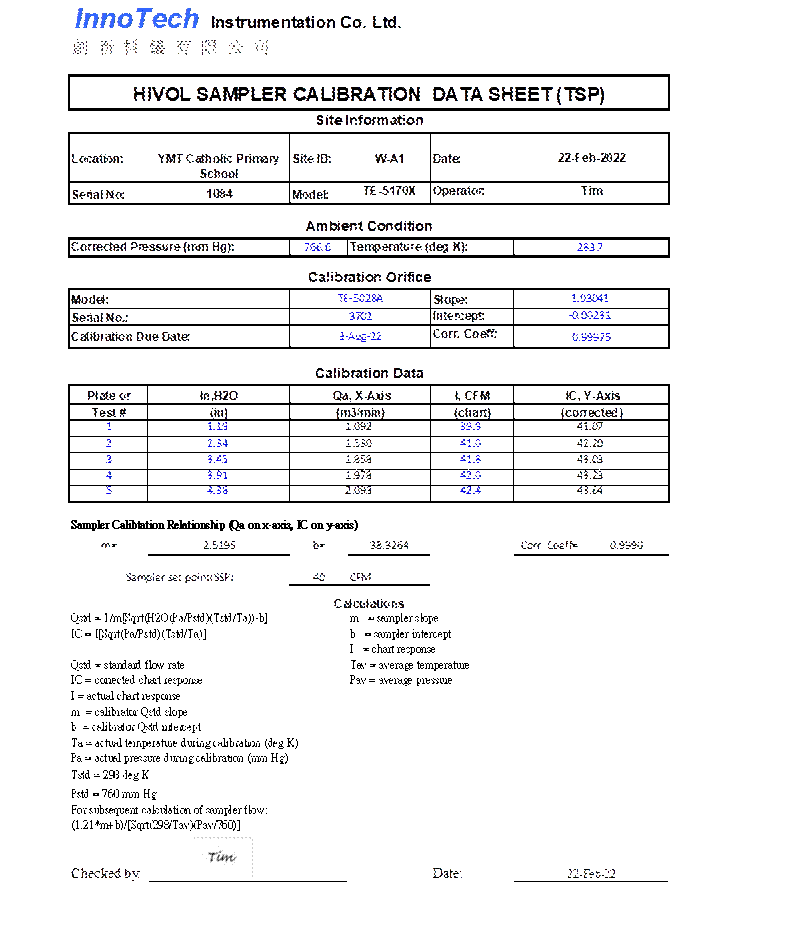 H. Calibration Certificate (Air Monitoring)