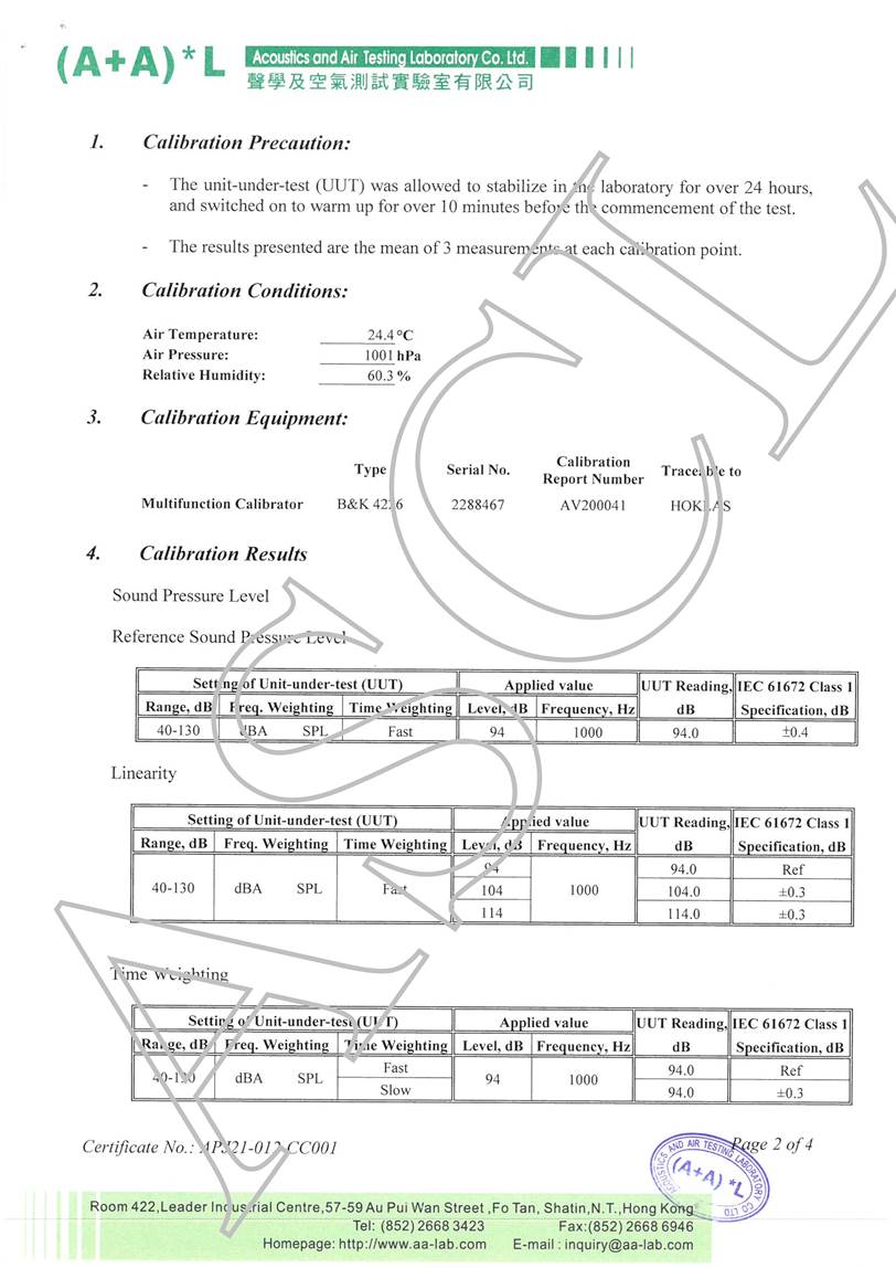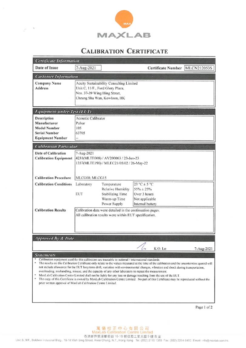 I. Calibration Certificate (Noise)