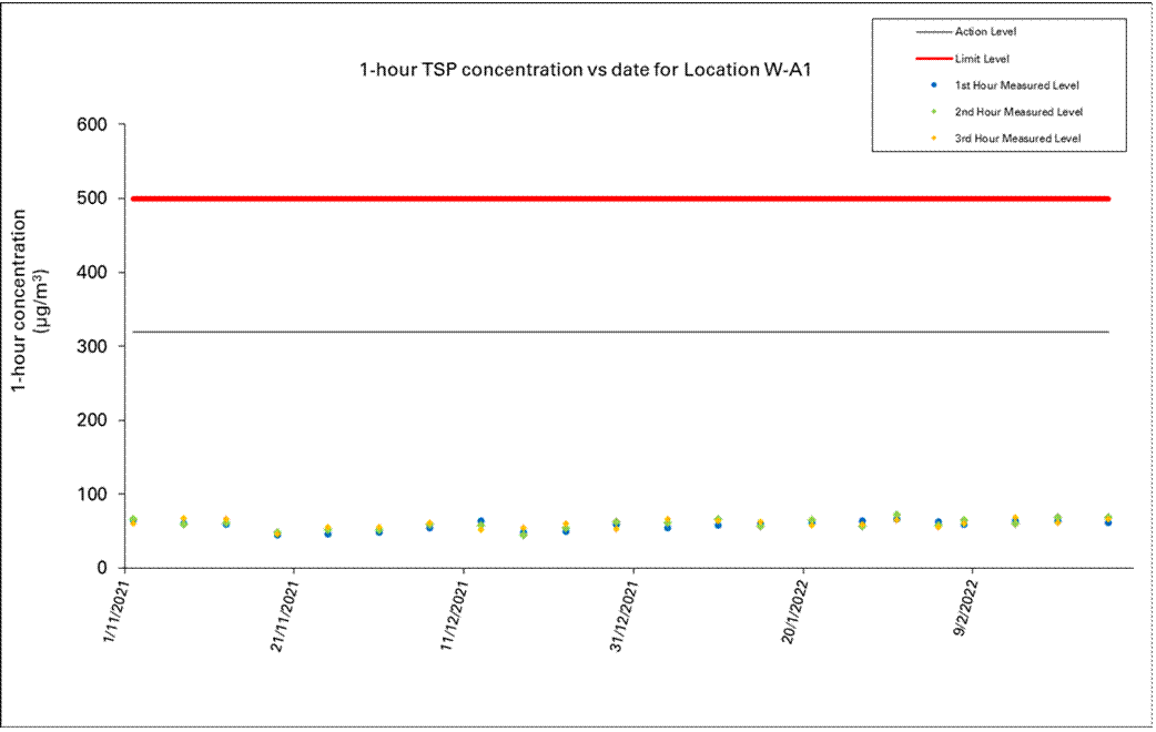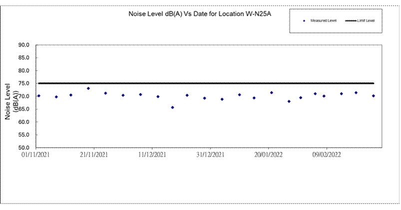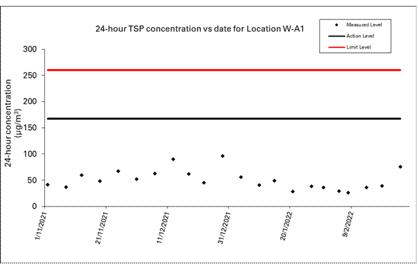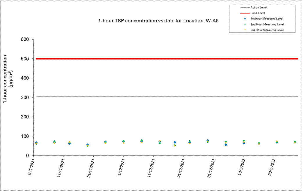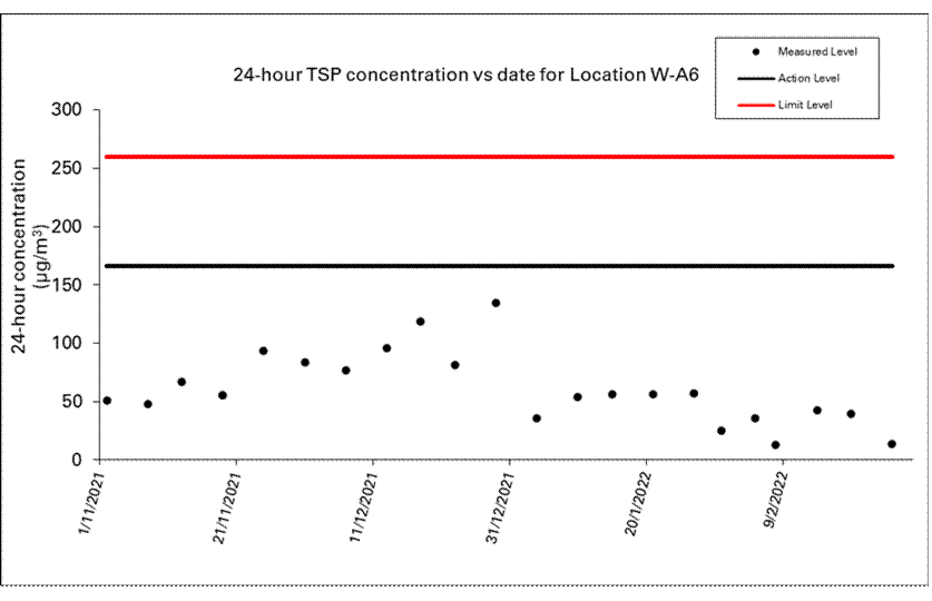 A.7 No exceedance of the Action and Limit Levels of 1-hour TSP, 24-hour TSP and construction noise monitoring was recorded during the reporting month.