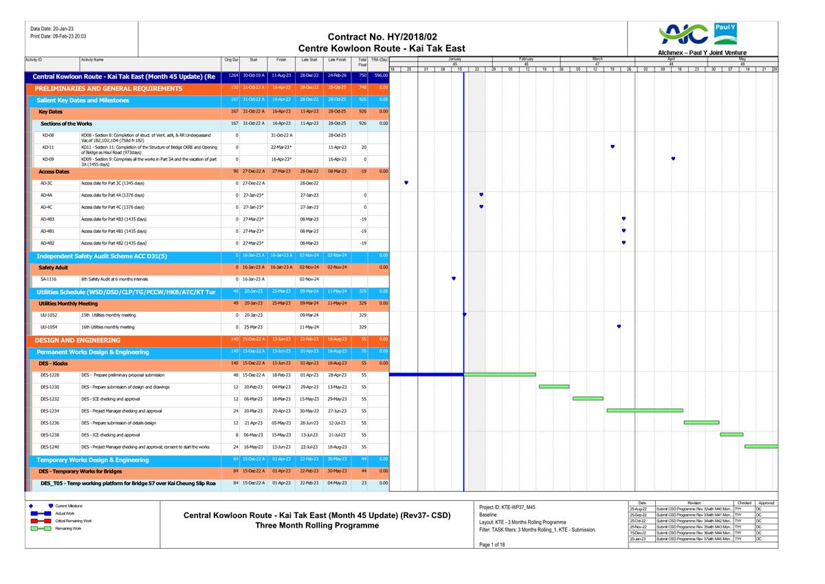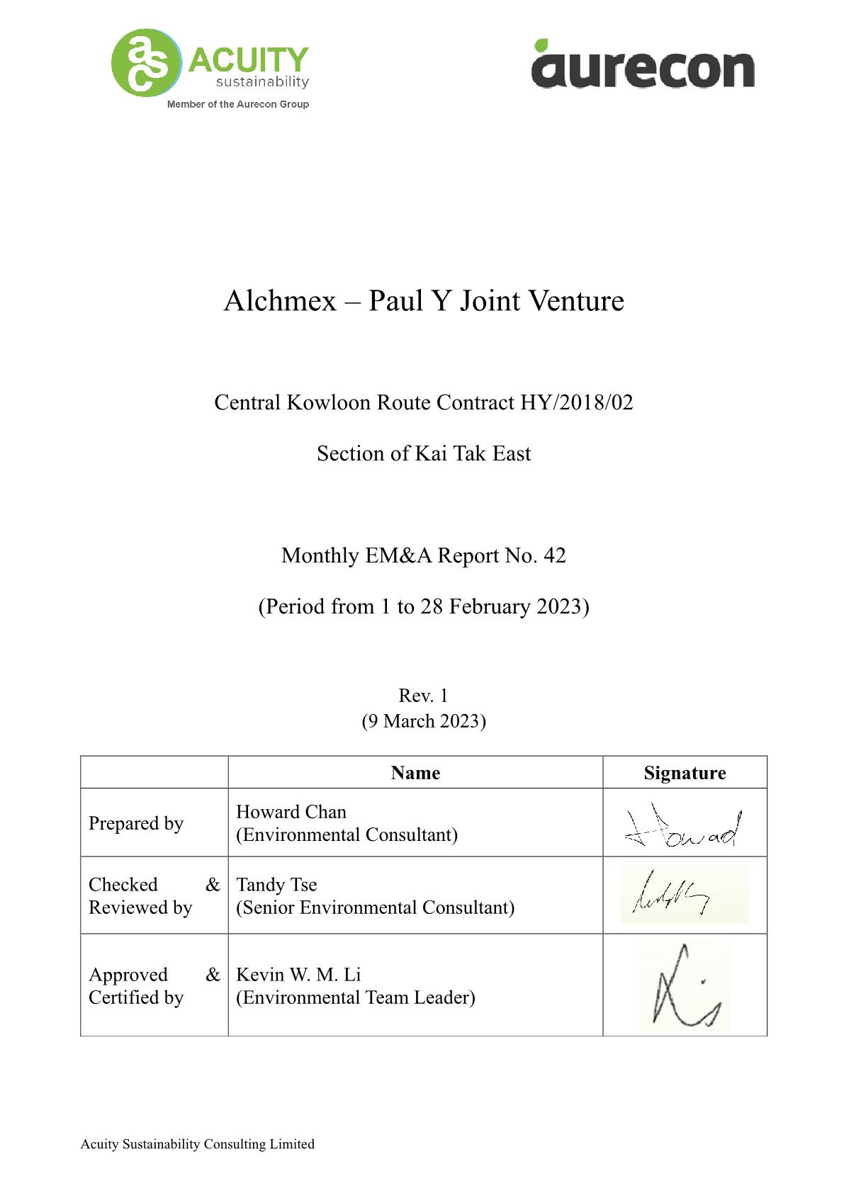 A.1 Alchmex – Paul Y Joint Venture (“Contractor”) commenced the construction works of Highway Department (HyD) Central Kowloon Route Contract No. HY/2018/02 – Section of Kai Tak East (“The Project”) on 9 September 2019. This report is the 42nd monthly Environmental Monitoring and Audit (EM&A) report presenting the EM&A works carried out during the period from 1 February 2023 to 28 February 2023.