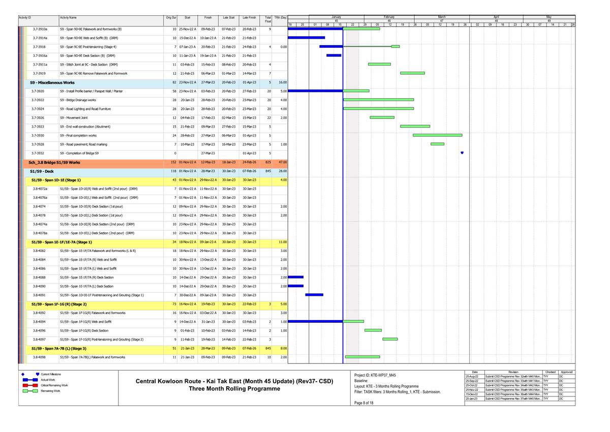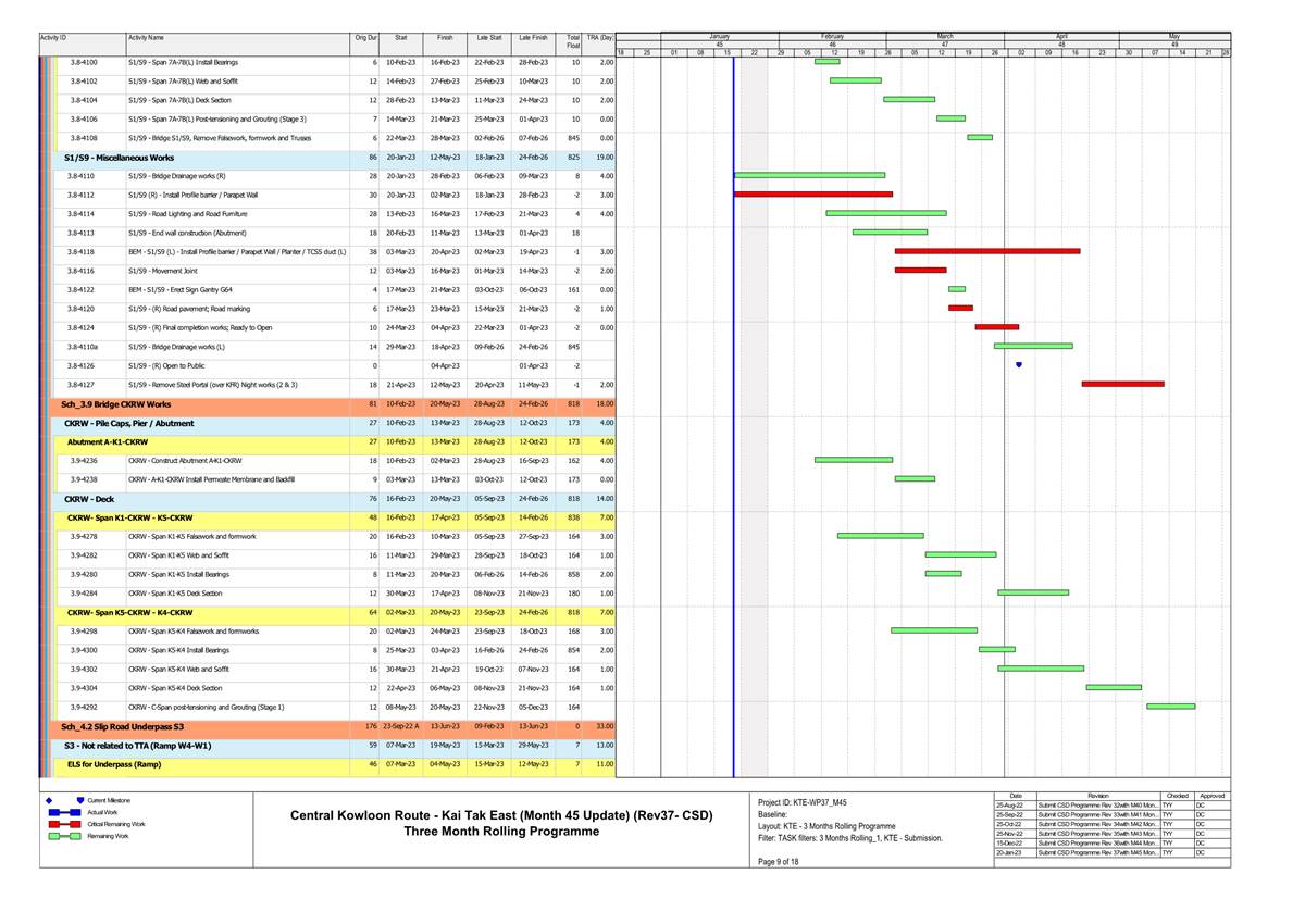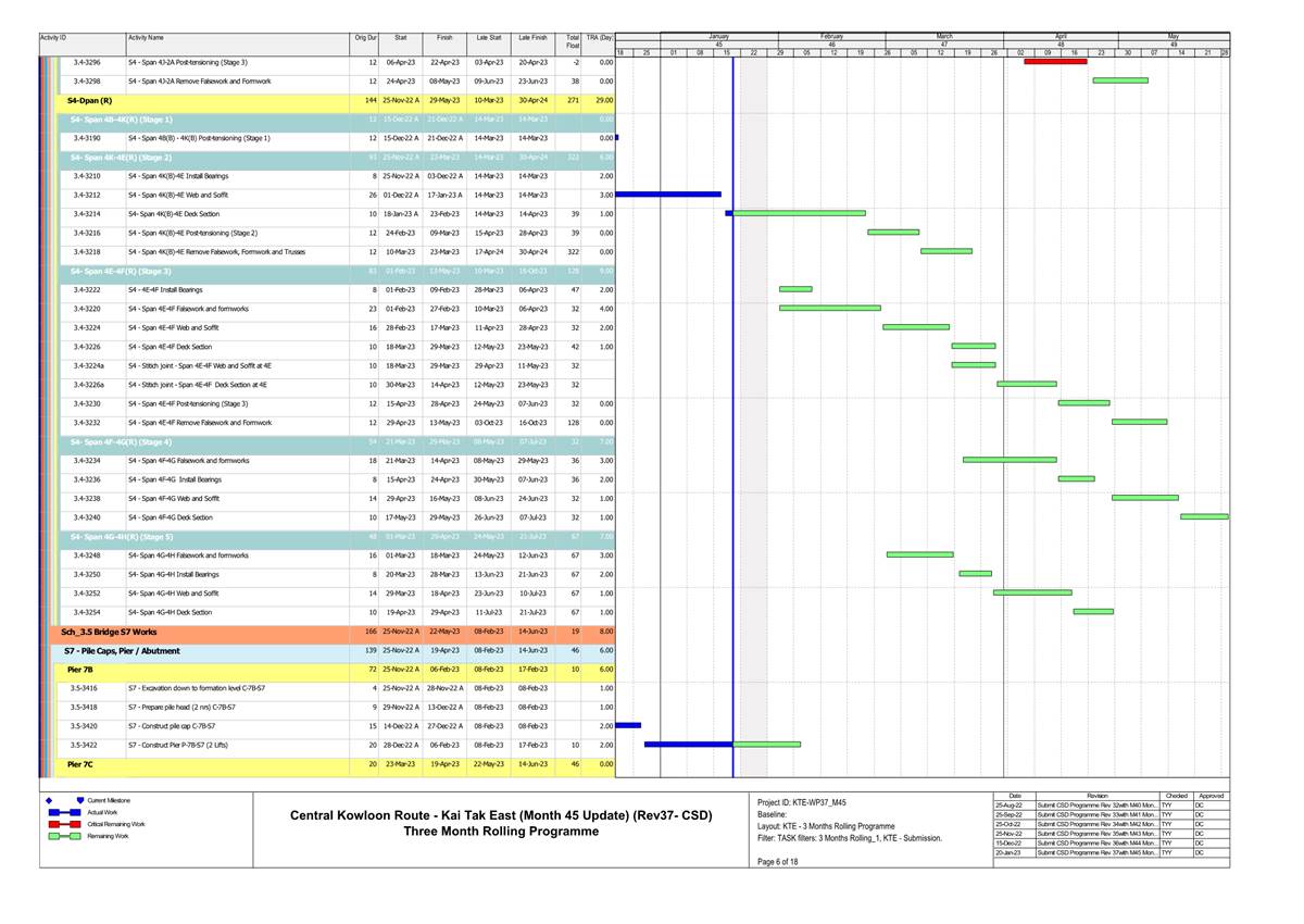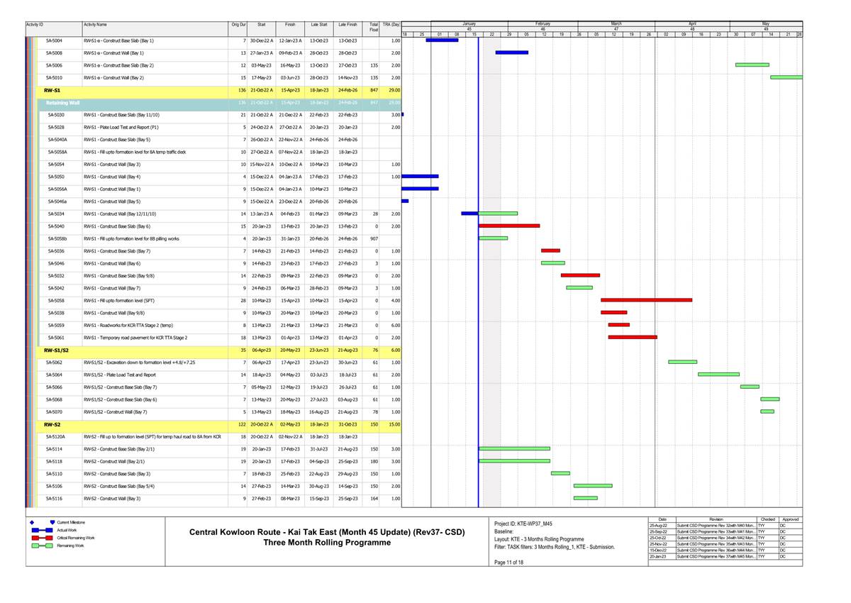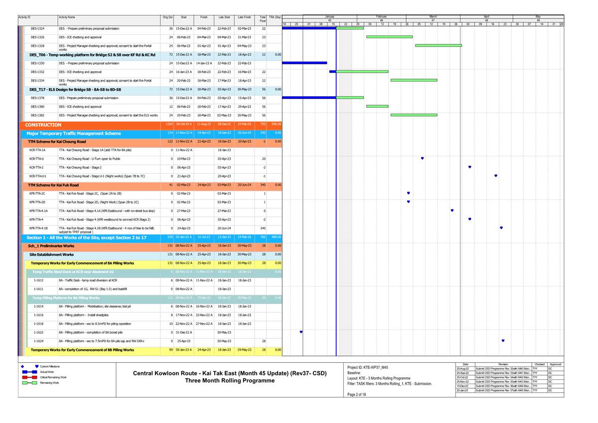 1.5. A summary of major construction activities provided by the Contractor in this reporting period is shown in Table 1.1. The construction programme is presented in Appendix B.