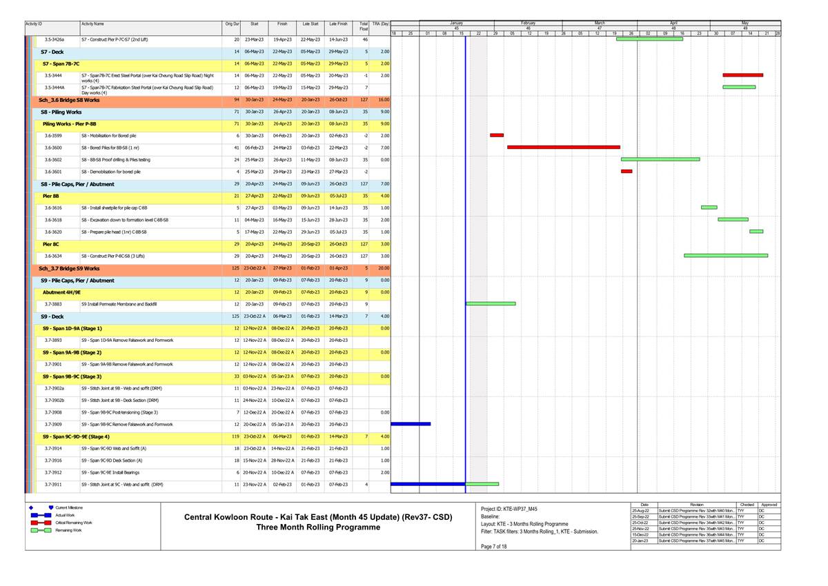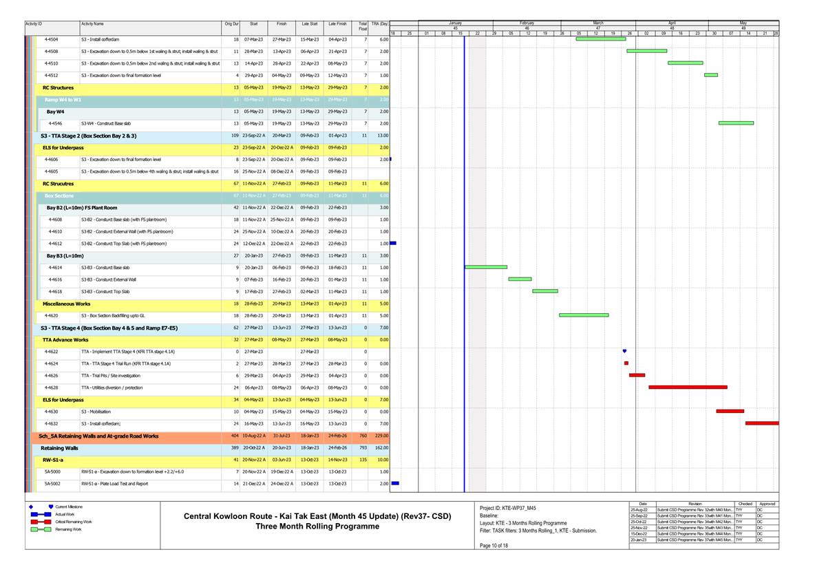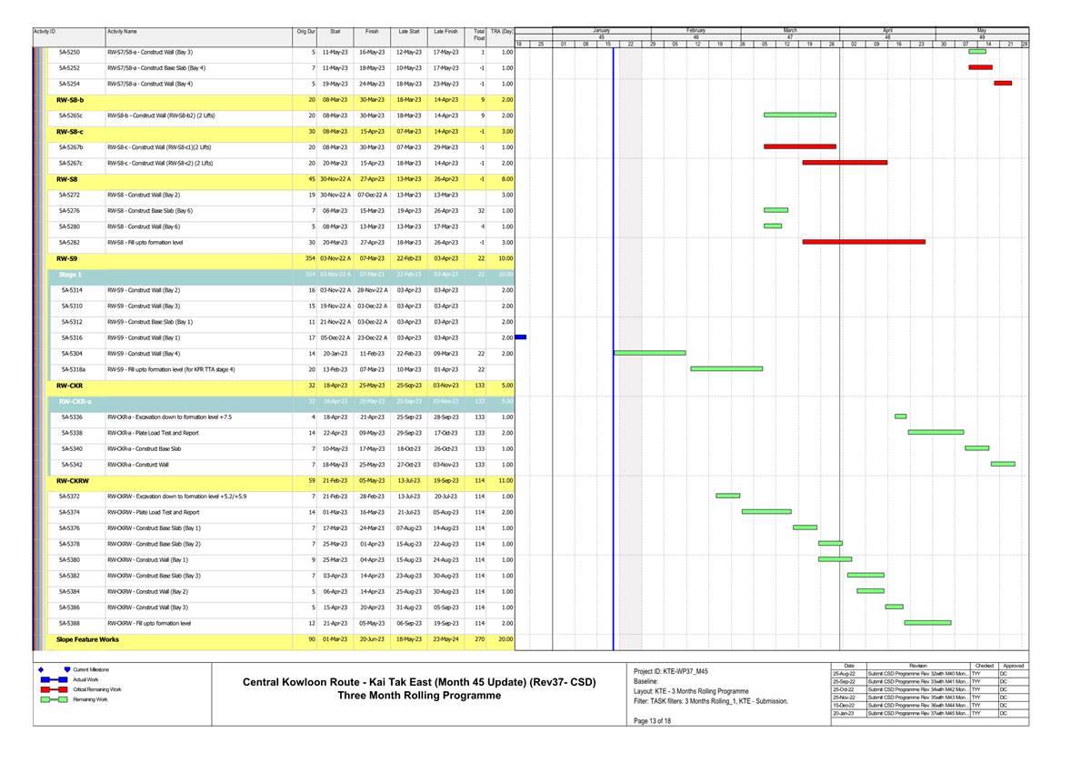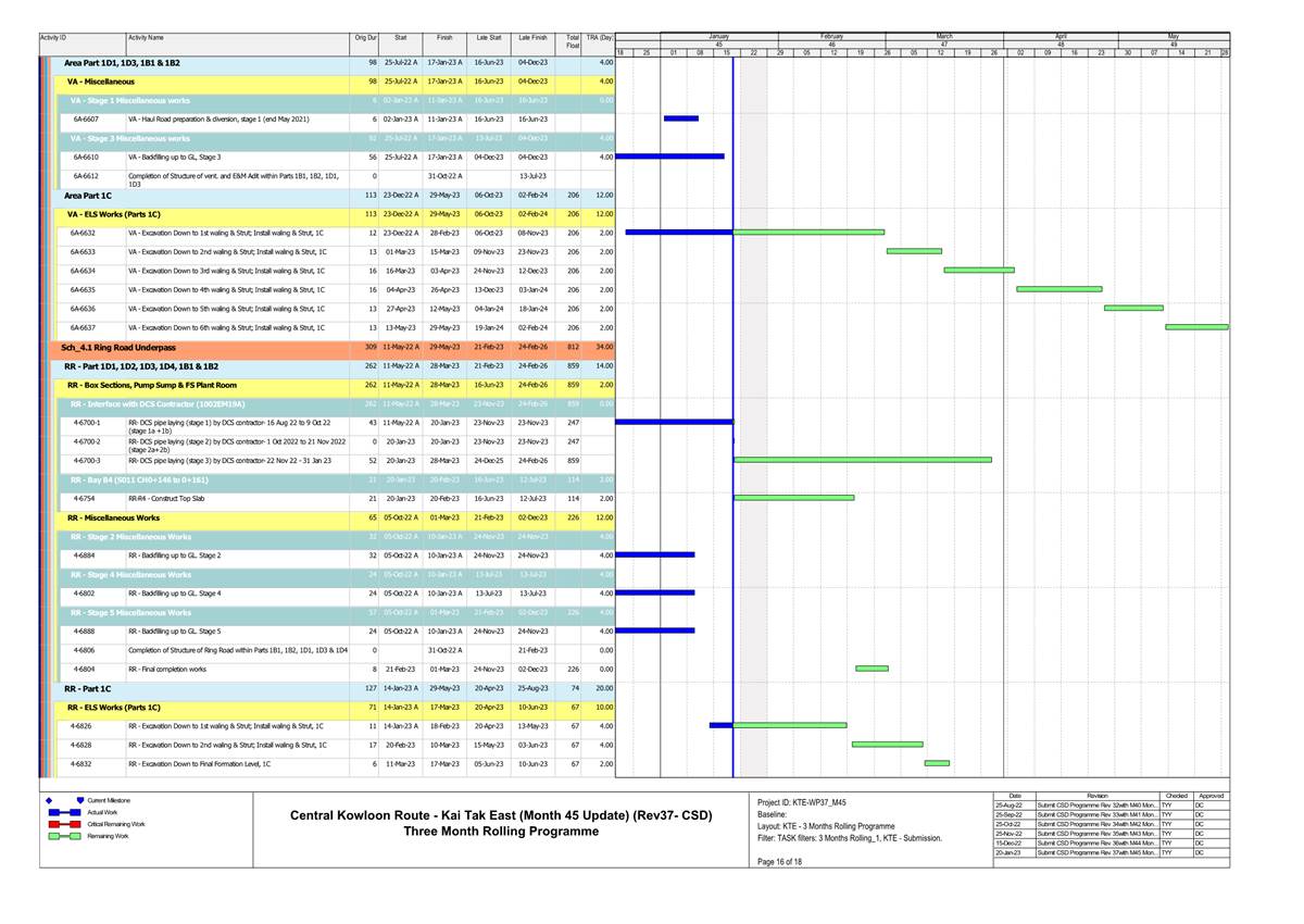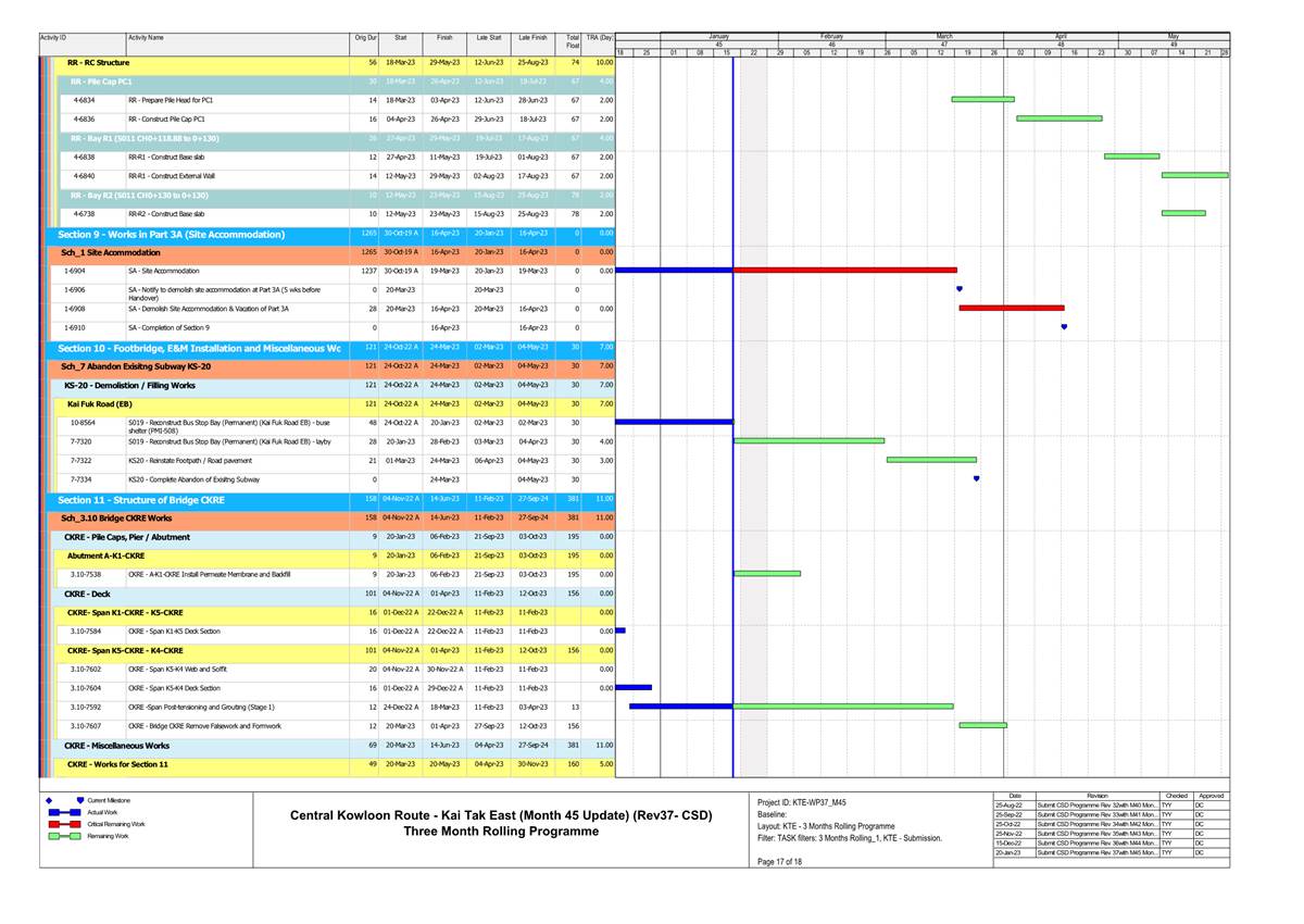 1.5. A summary of major construction activities provided by the Contractor in this reporting period is shown in Table 1.1. The construction programme is presented in Appendix B.