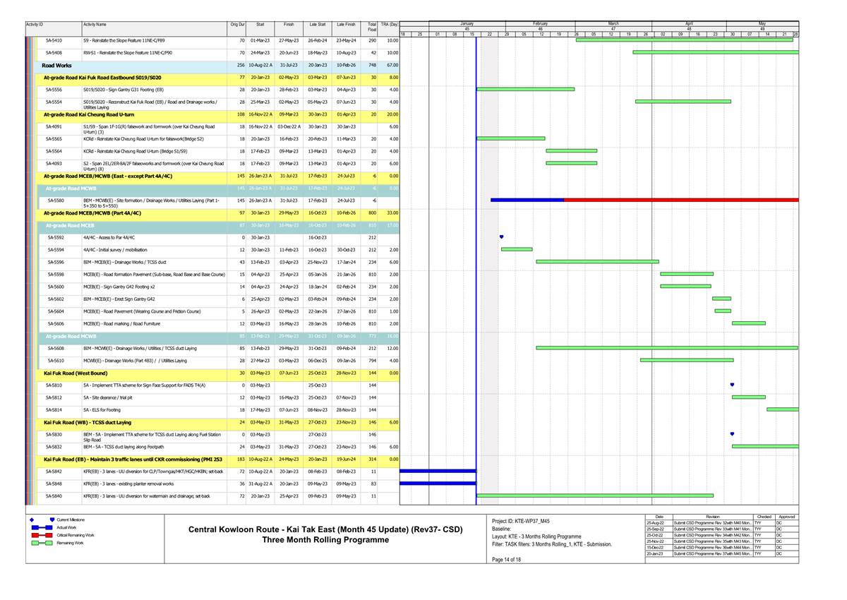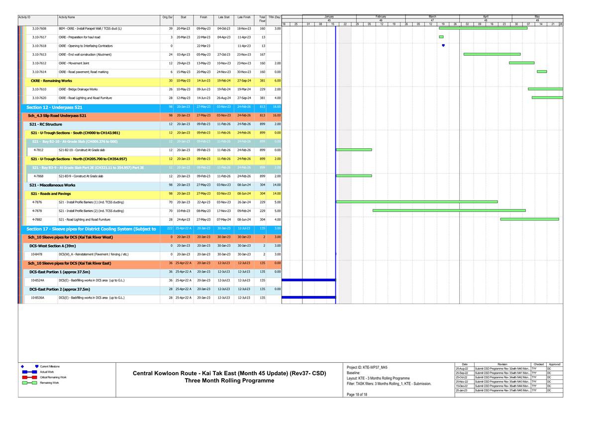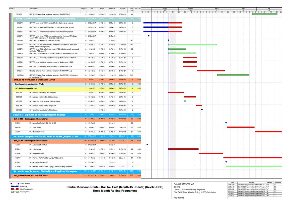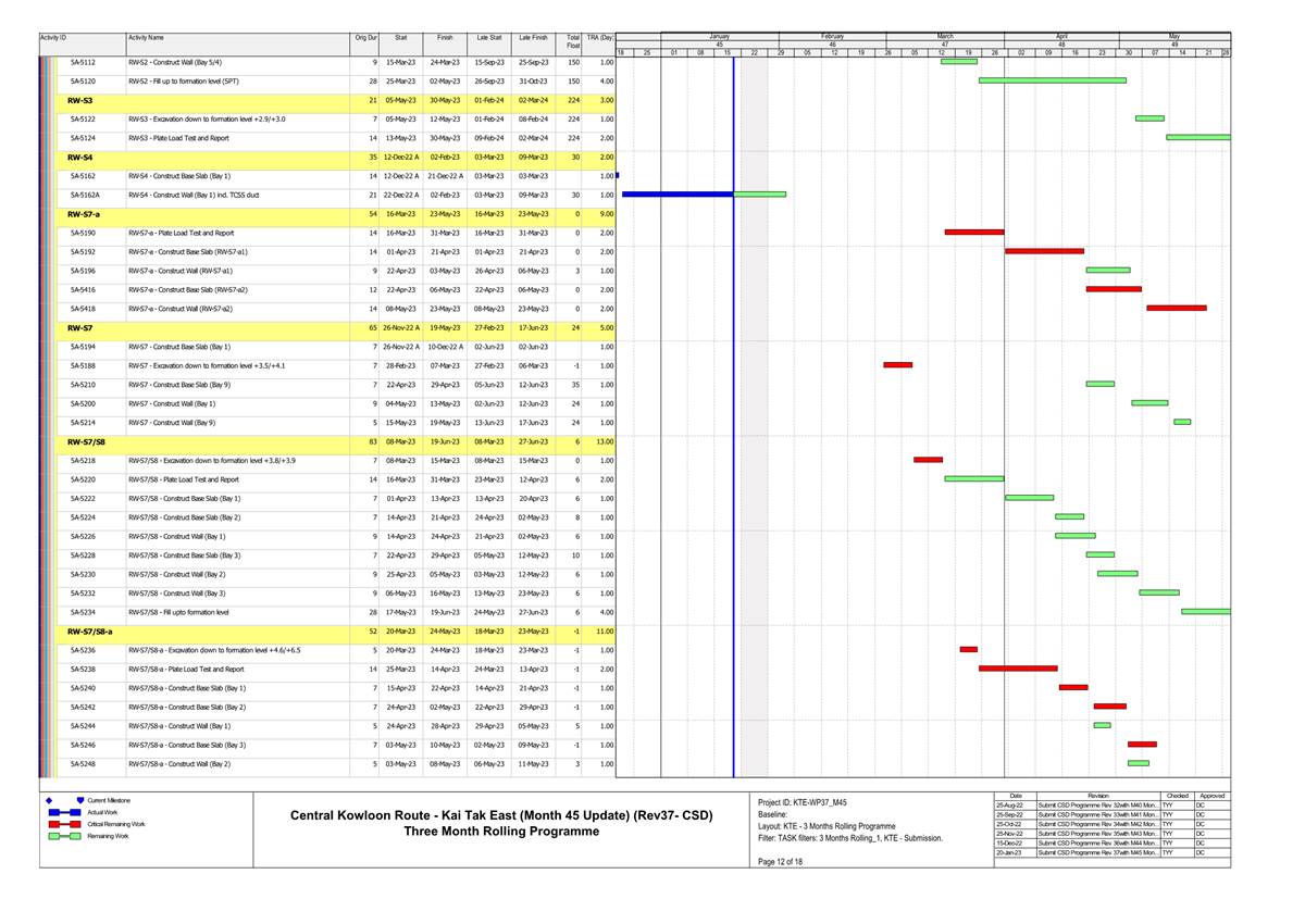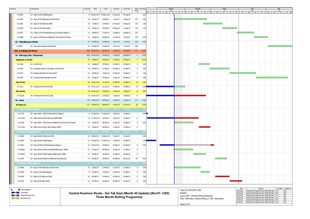 1.5. A summary of major construction activities provided by the Contractor in this reporting period is shown in Table 1.1. The construction programme is presented in Appendix B.