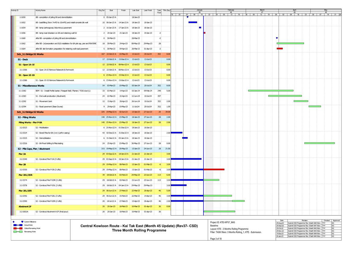 · S1, S3, S4, S9, CKRE, CKRW Bridge Construction · Retaining Wall Construction at U-Turn & Portion 2B · Excavation Work at Portion 3B · Bored Pile at U-Turn |