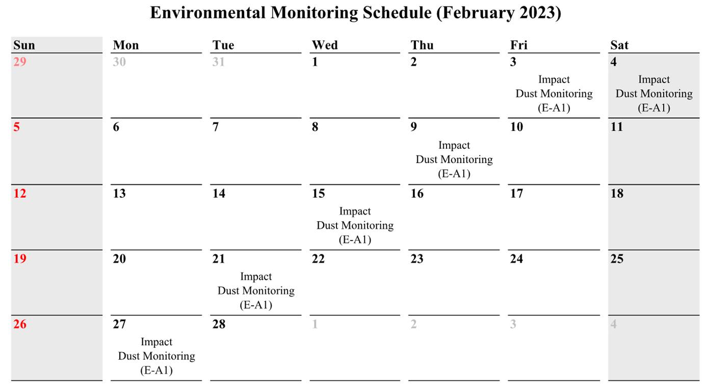 A.3 A summary of regular construction dust monitoring activities in this reporting period is listed below: