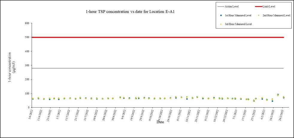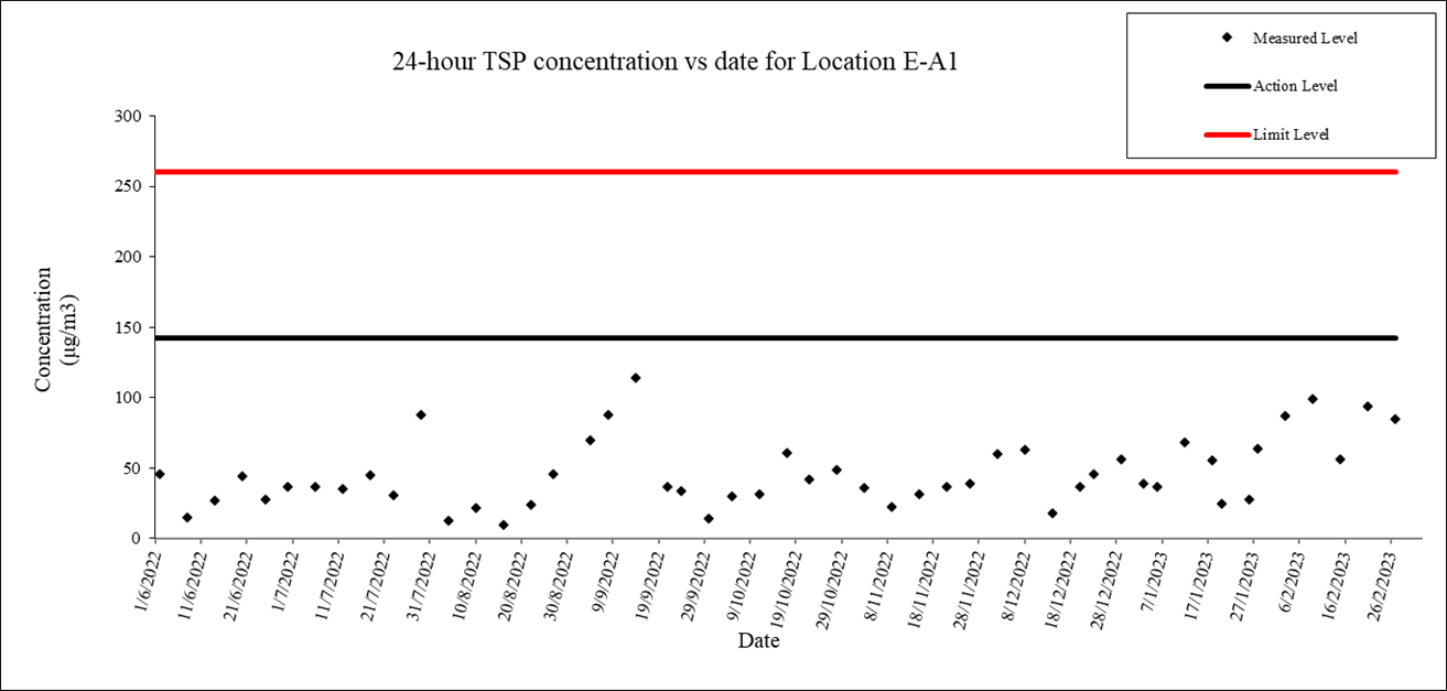 A.7 No exceedance of the Action and Limit Levels of 24-hour TSP and 1-hour TSP monitoring were recorded during the reporting month.