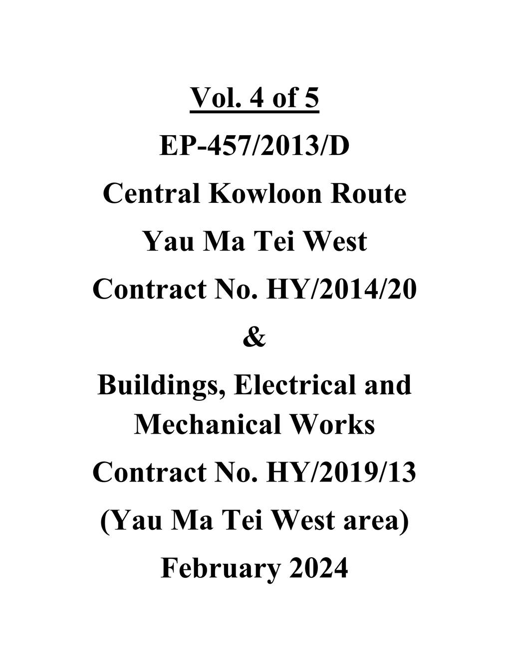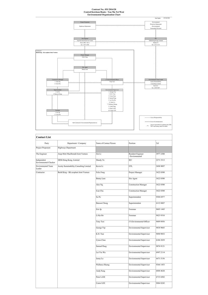 A.1 Build King – SK ecoplant Joint Venture (“Contractor”) commenced the construction works of Highway Department (HyD) Central Kowloon Route Contract No. HY/2014/20 – Section of Yau Ma Tei West (“The Project”) on 12 February 2019. This is the 61st monthly Environmental Monitoring and Audit (EM&A) report presenting the EM&A works carried out during the period from 1 February 2024 to 29 February 2024.