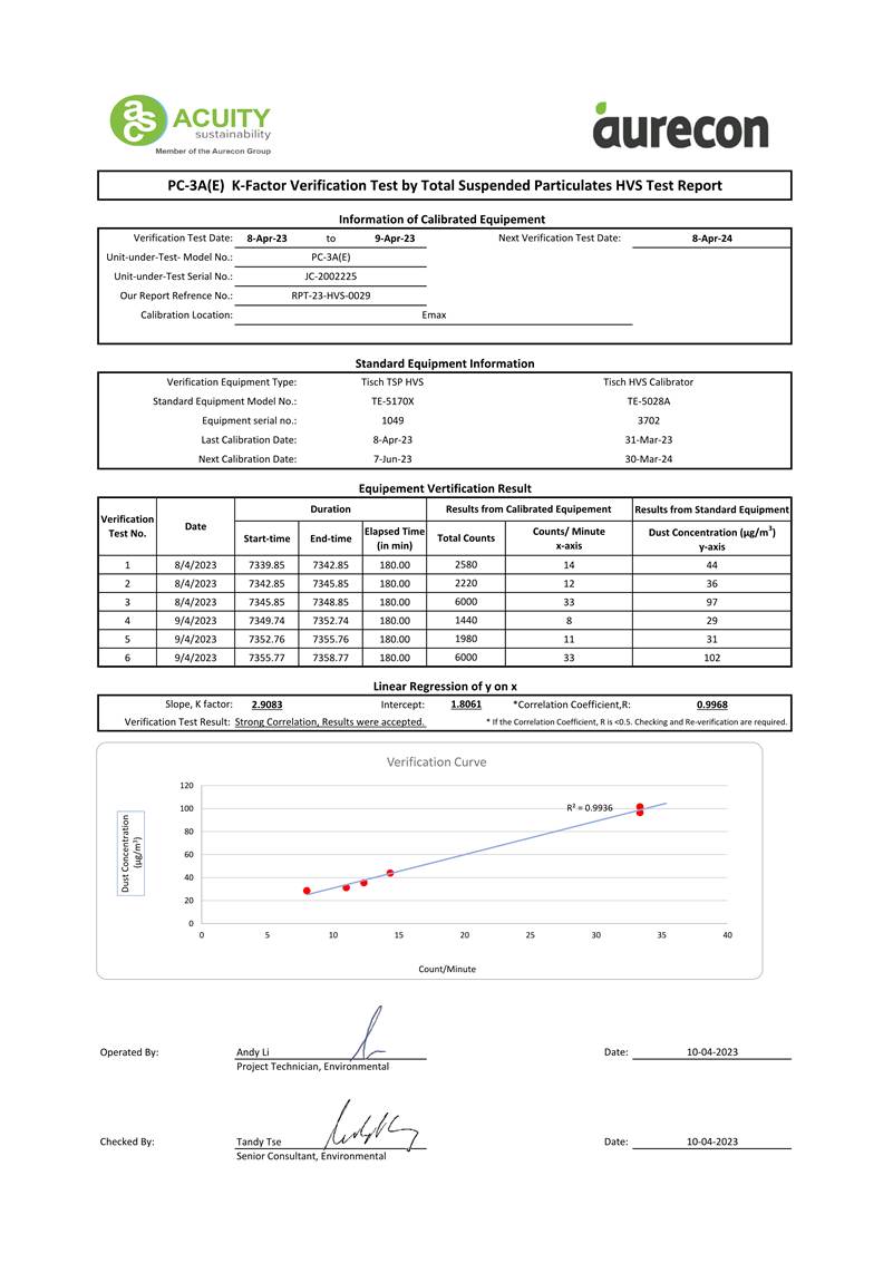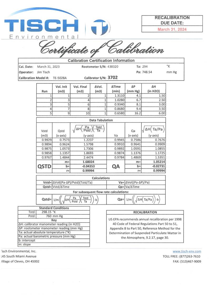 H. Calibration Certificate (Air Monitoring)