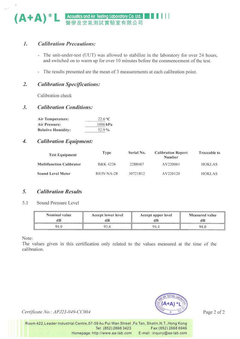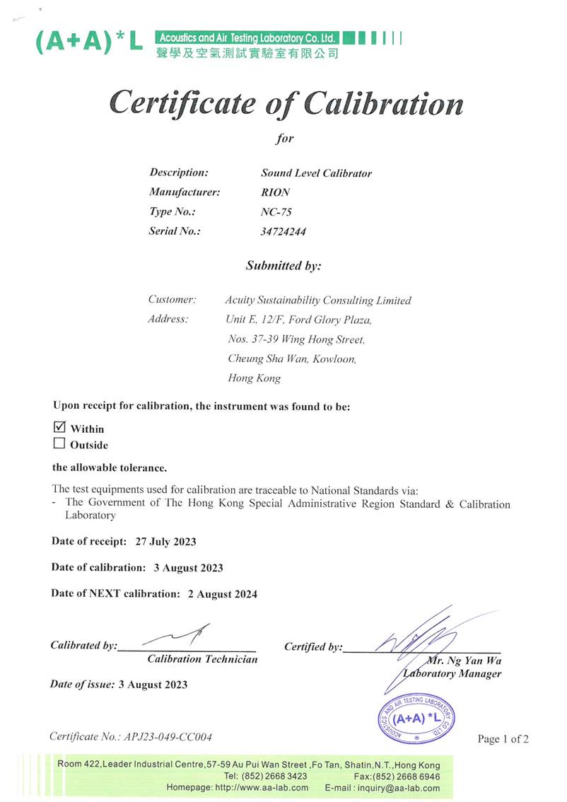 I. Calibration Certificate (Noise)