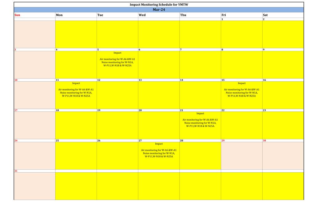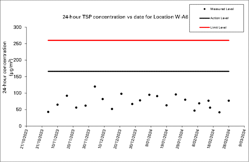 A.7 No exceedance of Action and Limit Level of construction noise, 24 hour TSP and 1 hour TSP was recorded in the reporting month.