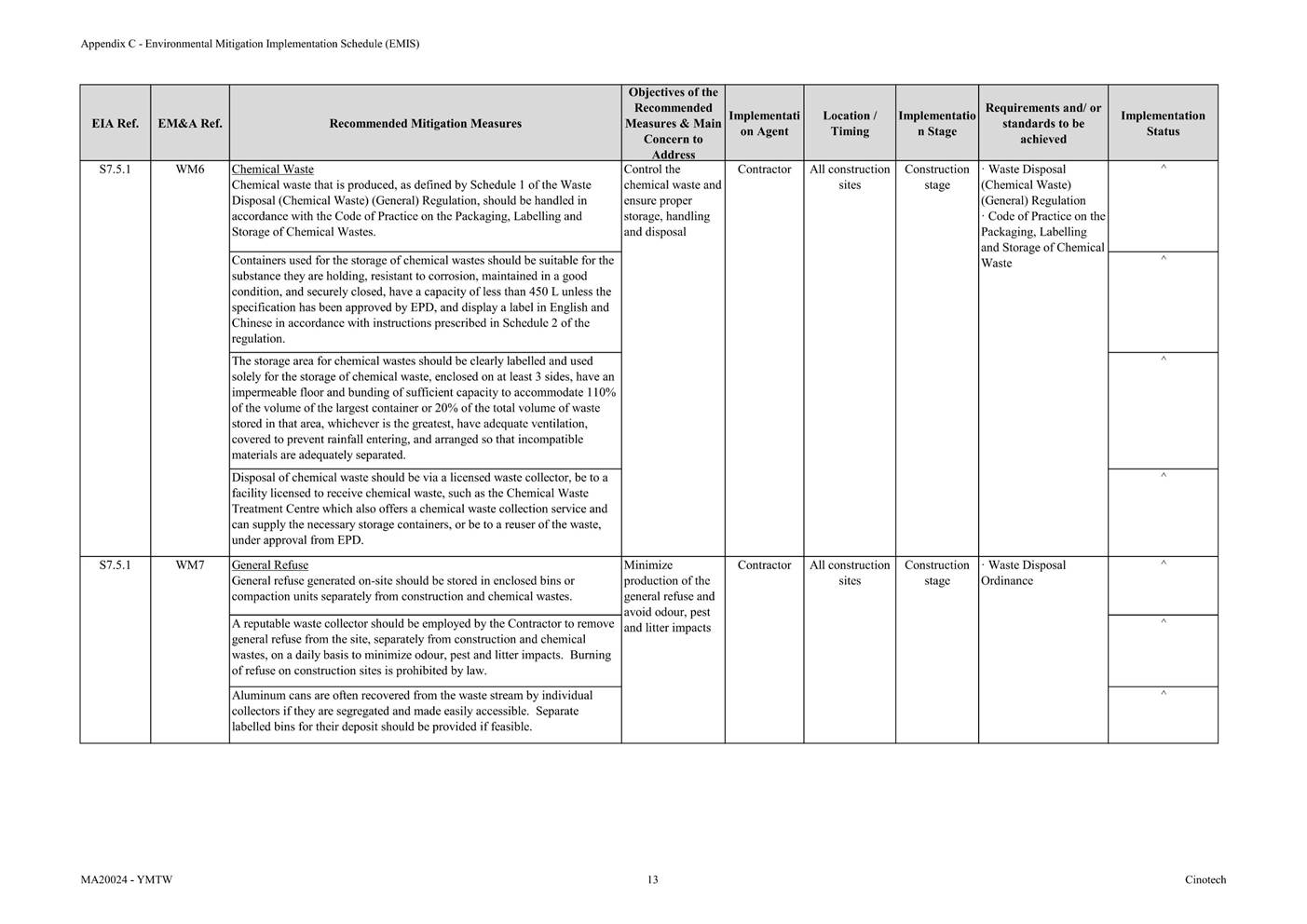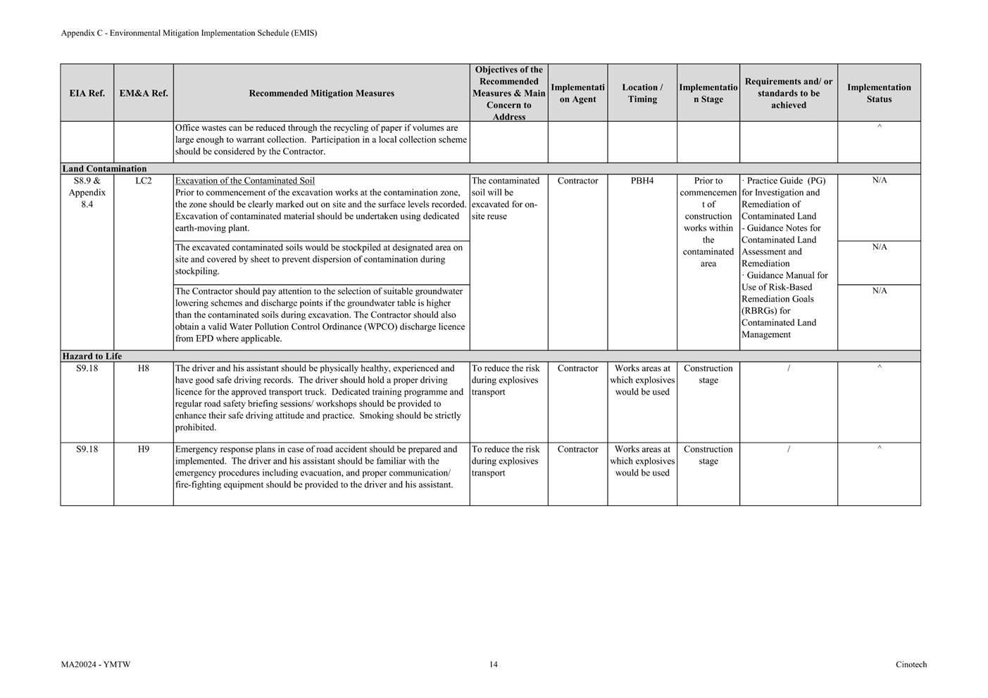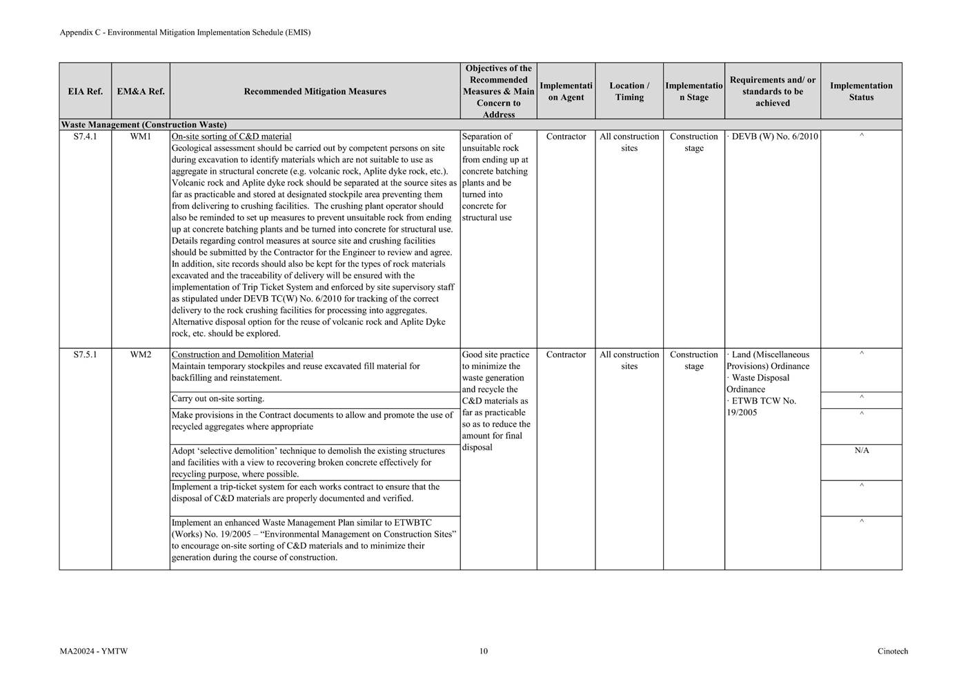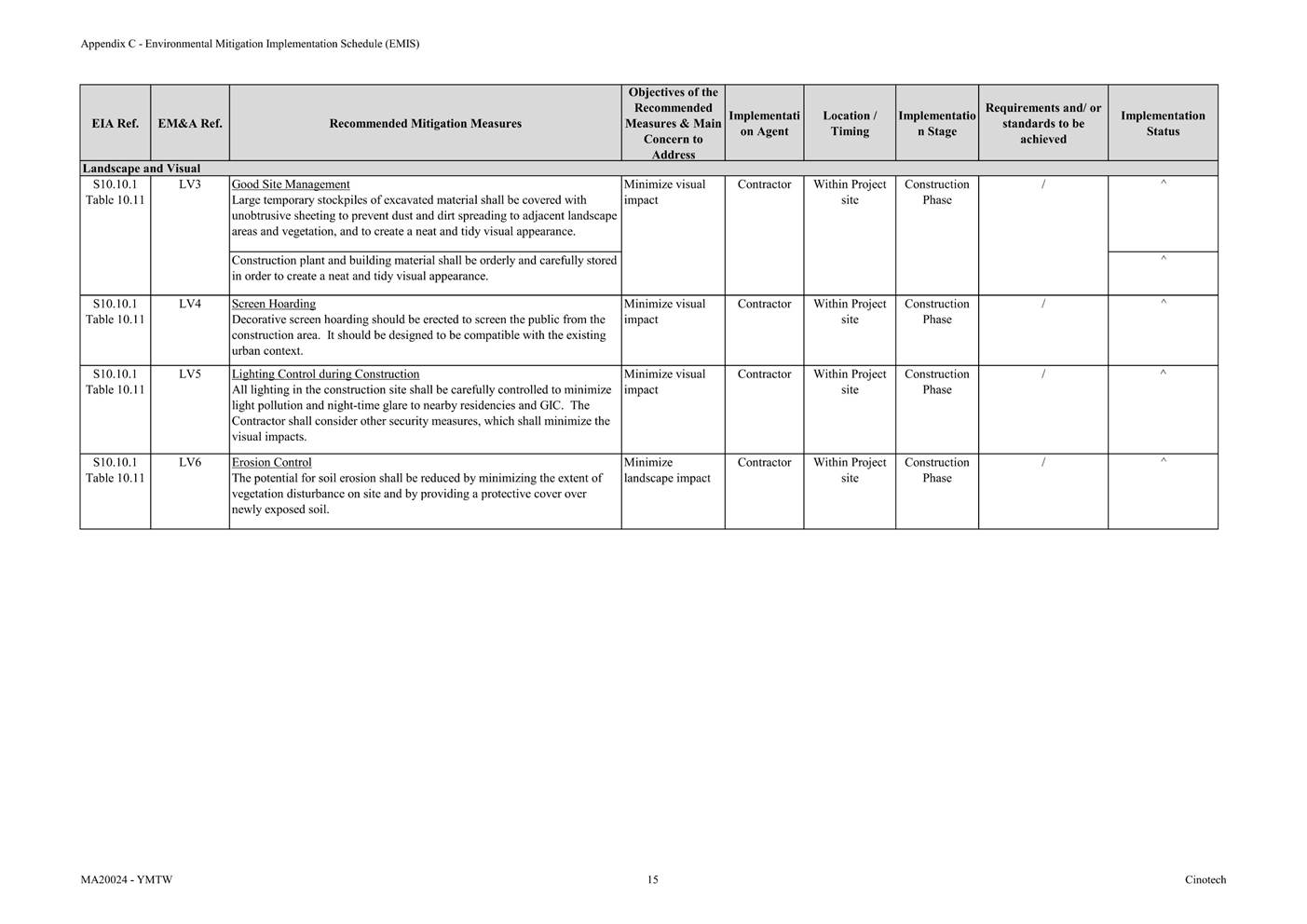 Appendix C Environmental Mitigation Implementation Schedule (EMIS)