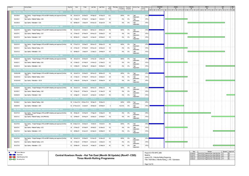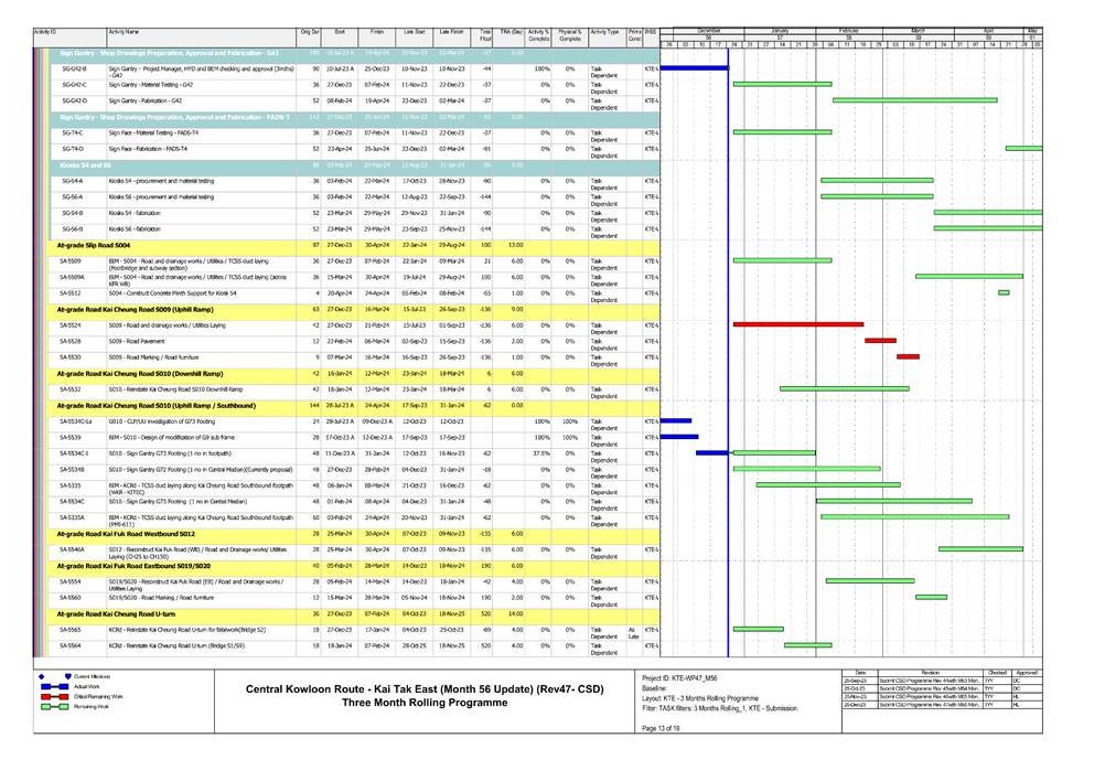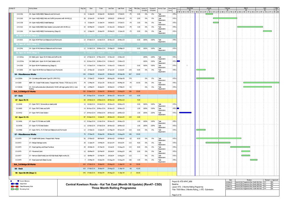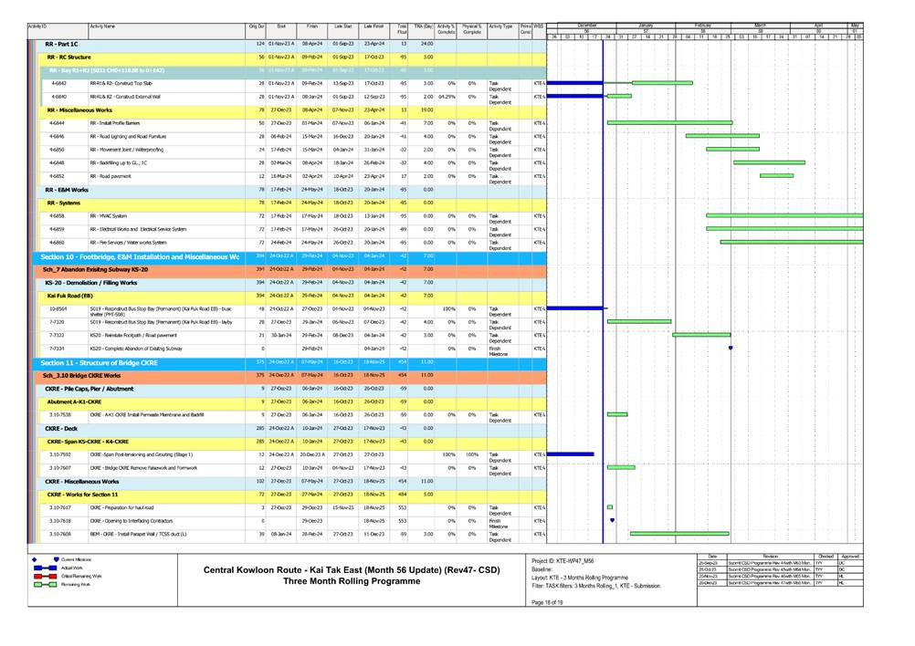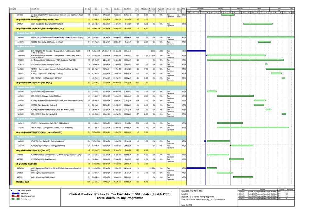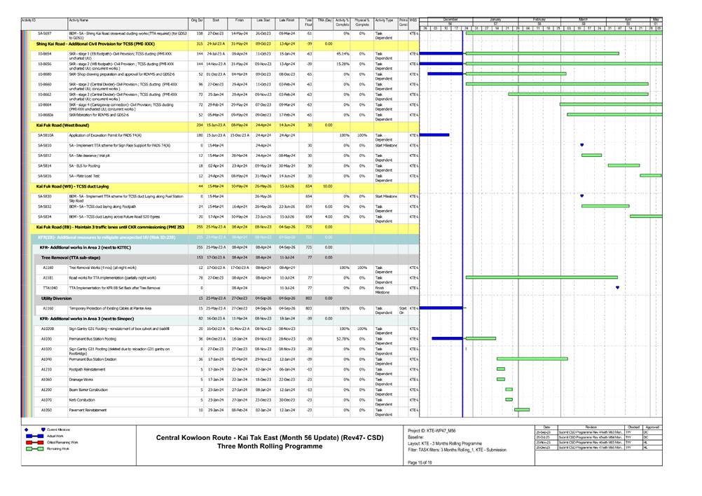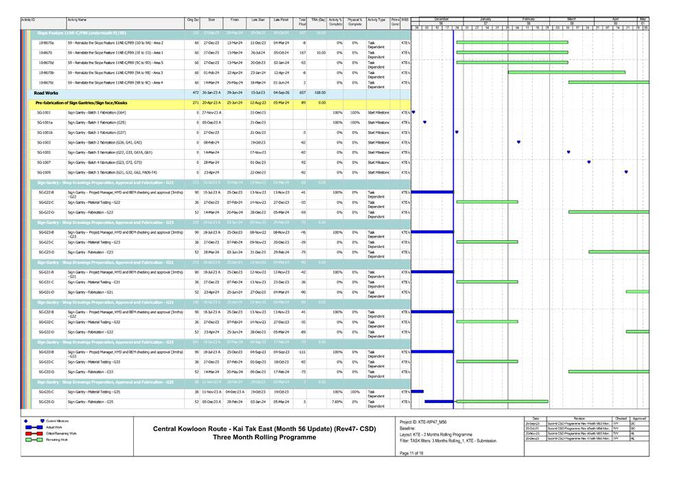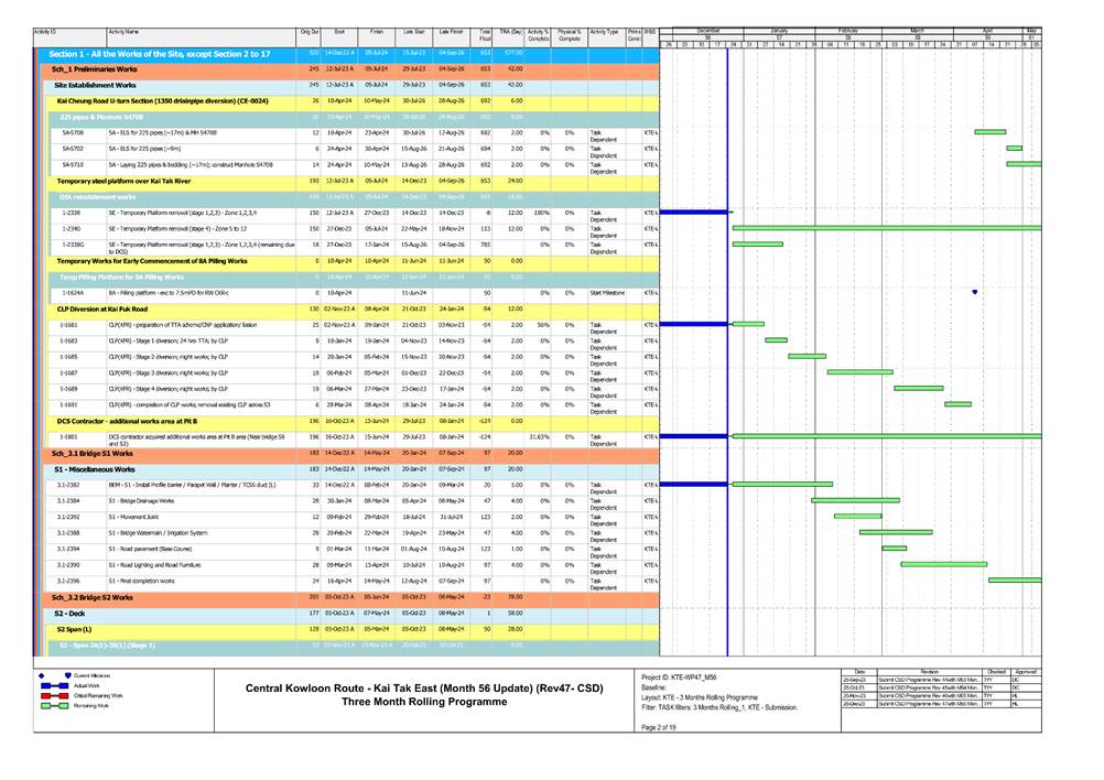 1.5. A summary of major construction activities provided by the Contractor in this reporting period is shown in Table 1.1. The construction programme is presented in Appendix B.