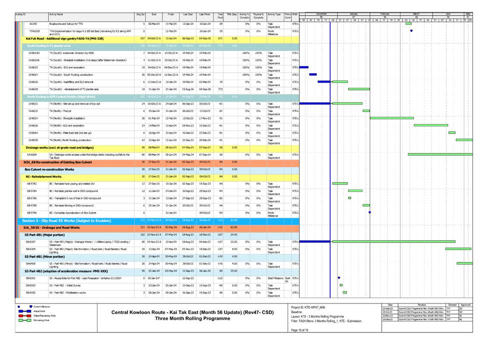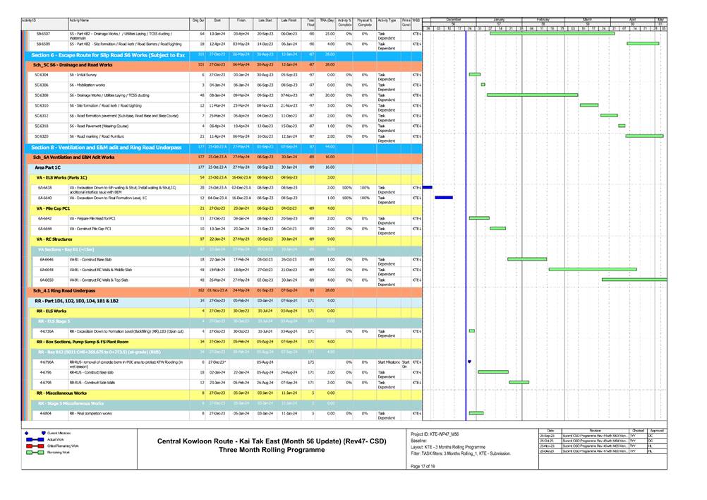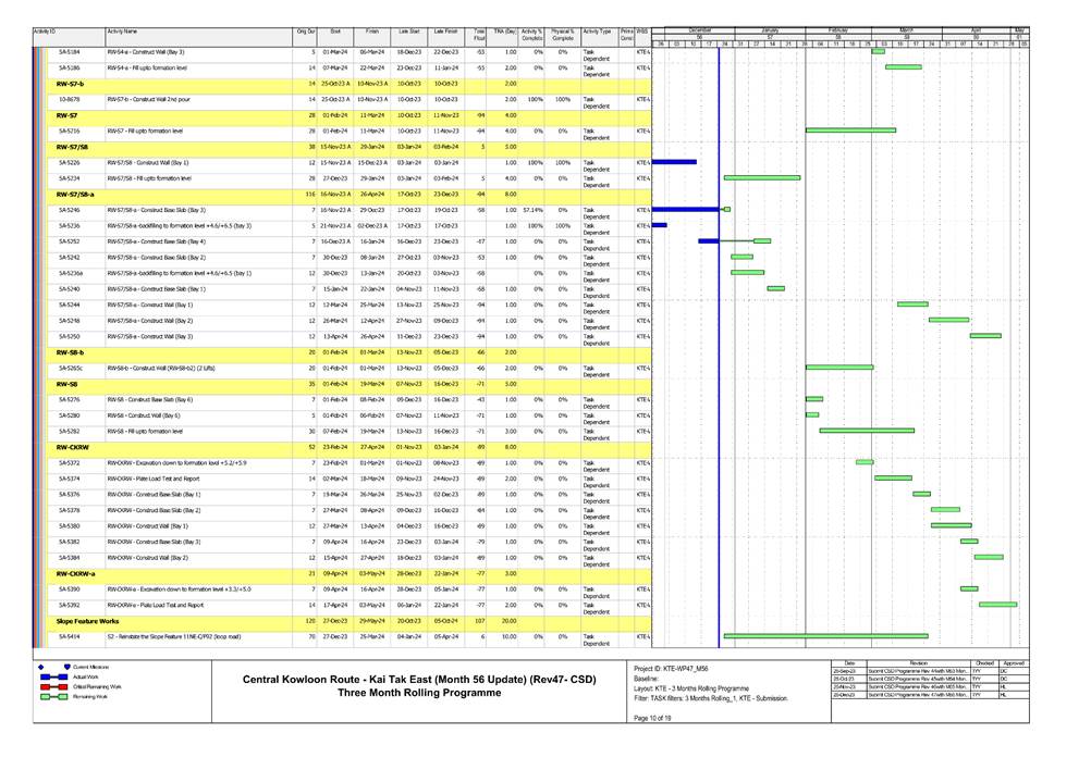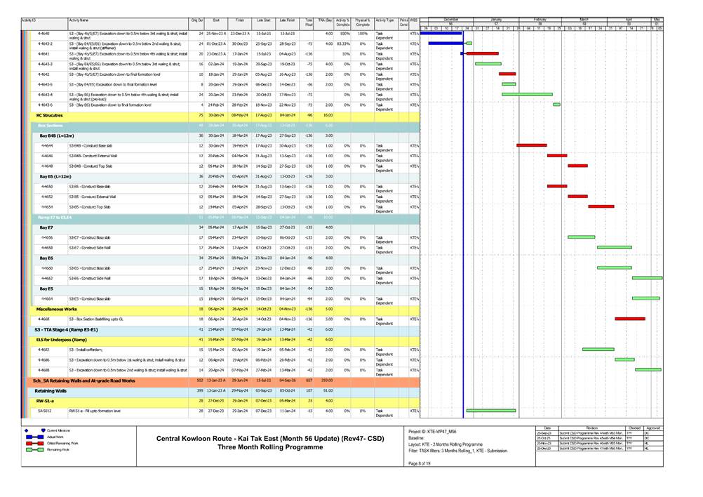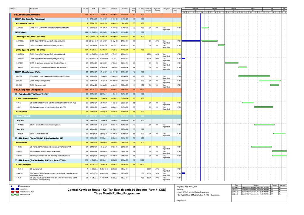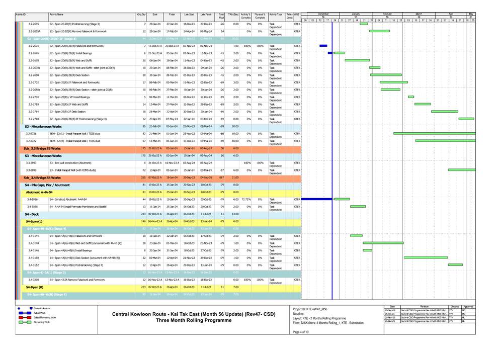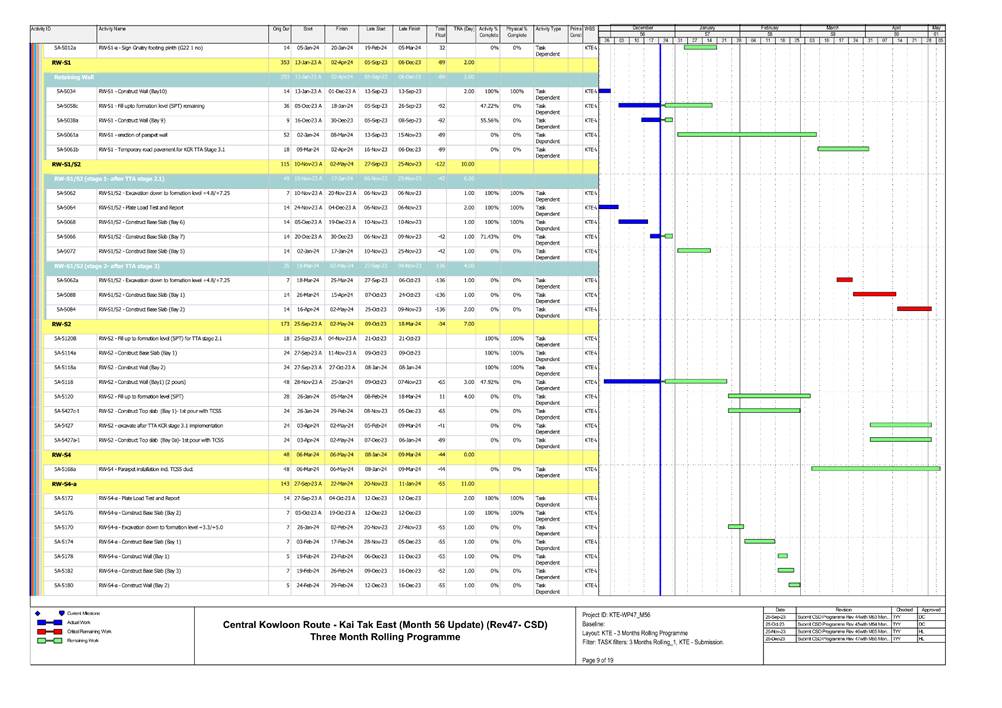 · S1, S2, S3, S4, S7, S9, CKRE, CKRW Bridge Construction · Retaining Wall Construction at U-Turn & Portion 2B · Excavation Work at Portion 4A/4C |