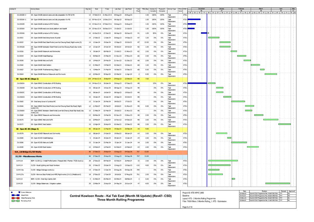 · S1, S2, S3, S4, S7, S8, S9, CKRE, CKRW Bridge Construction · Retaining Wall Construction at U-Turn & Portion 2B · Excavation Work at Portion 4A/4C |