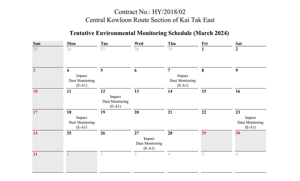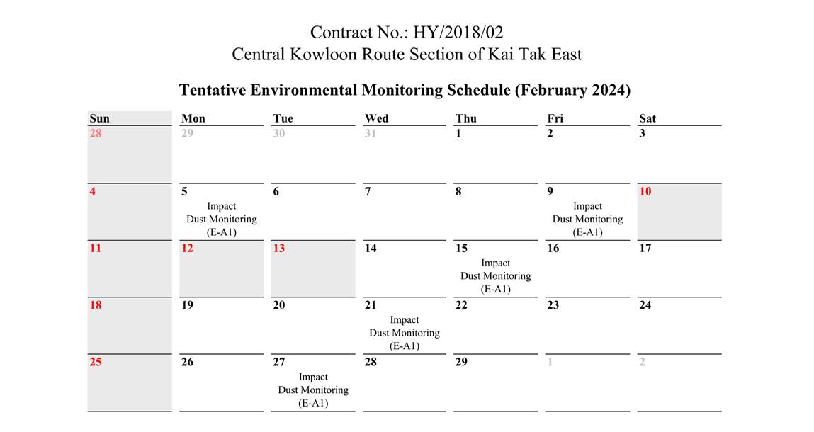 A.1 Alchmex – Paul Y Joint Venture (“Contractor”) commenced the construction works of Highway Department (HyD) Central Kowloon Route Contract No. HY/2018/02 – Section of Kai Tak East (“The Project”) on 9 September 2019. This report is the 54th monthly Environmental Monitoring and Audit (EM&A) report presenting the EM&A works carried out during the period from 1 February 2024 to 29 February 2024.
