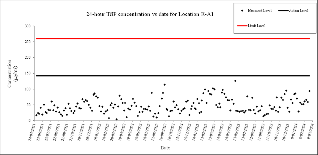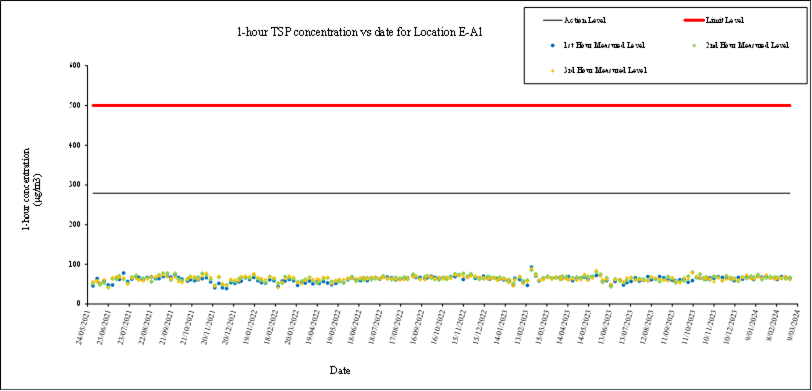 A.7 No exceedance of the Action and Limit Levels of 24-hour TSP and 1-hour TSP monitoring were recorded during the reporting month.