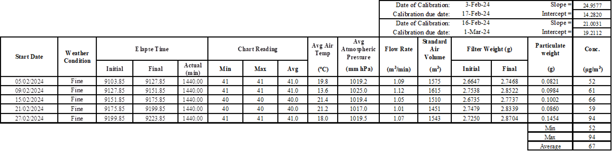 A.3 A summary of regular construction dust monitoring activities in this reporting period is listed below: