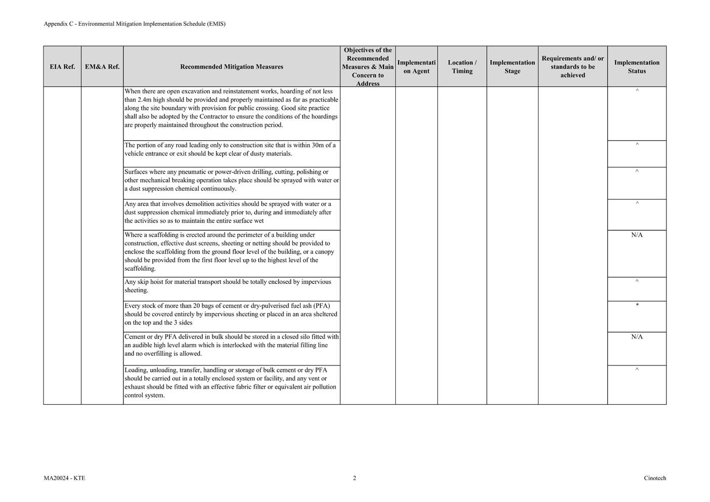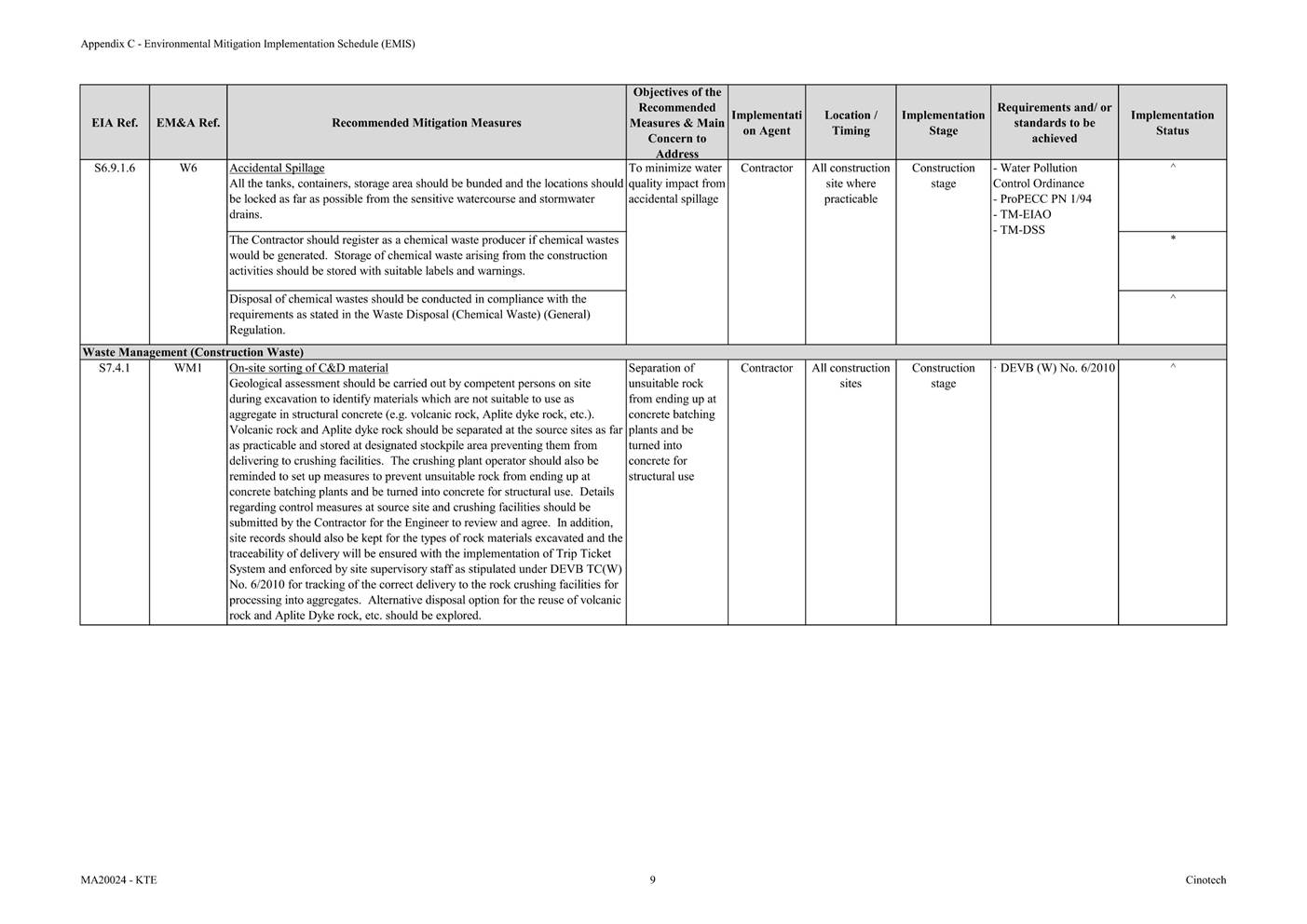 F. Environmental Mitigation Implementation Schedule (EMIS)