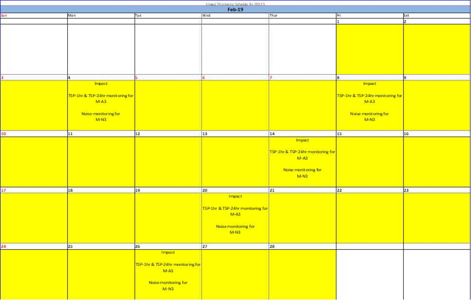 A.7 Joint weekly site inspections were conducted by representatives of the Contractor, Engineer and Contractor’s ET on 2,9,15,22 and 29 January 2019. The representative of IEC joined the site inspection on 9 January 2019. Details of the audit findings and implementation status are presented in Section 5.