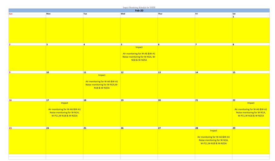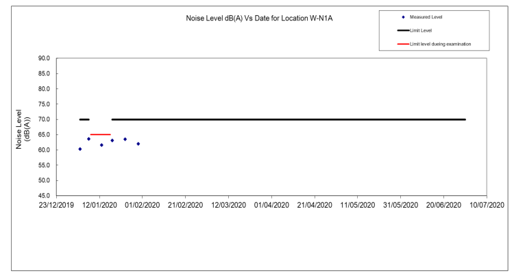 Note: Noise monitoring station at the Coronation Tower 1 (W-P11) was temporarily suspended from 3 February 2020 to 16 February 2020 due to a case of novel coronavirus infection at the Coronation Block 2.