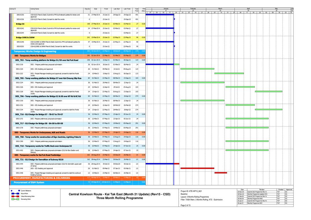 1.4. A summary of major construction activities provided by the Contractor in this reporting period is shown in Table 1.1. The construction programme is presented in Appendix B.