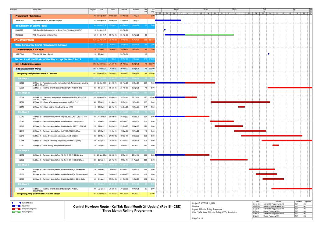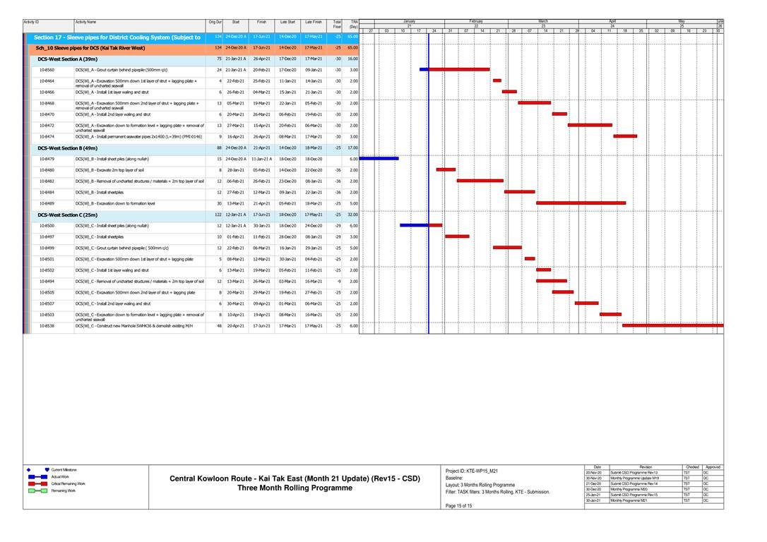 · Bored Pile at Portion 2B, 3B, Kai Cheung U Turn & Kai Cheung Loop Road. · Construction Work for the Foot Bridge at Kai Fuk Road. · Excavation Works for Adit at Area Part 1B. · Excavation Works for Underpass at Portion 3B. · Construction of Marine Platform at Kai Tak Nallah · Reconstruction of Box Culvert at Portion 2B · Sheet piling Work at Area Part 1A. |