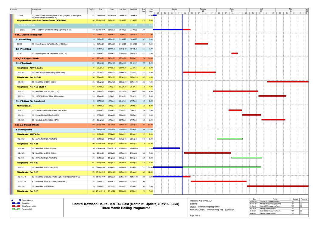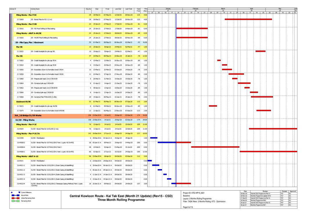 · Bored Pile at Portion 1A, 2B, 3B, Kai Cheung U Turn & Kai Cheung Loop Road. · Construction Work for the Foot Bridge at Kai Fuk Road. · Sheet piling Works for Adit at Area Part 1B. · Sheet piling Works for Underpass at Portion 3B. · Construction of Marine Platform at Kai Tak Nallah · Reconstruction of Box Culvert at Portion 2B · Sheet piling Work at Area Part 1A. |