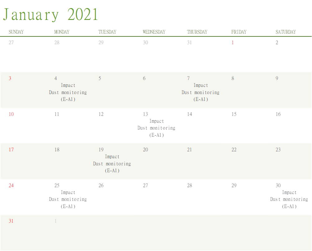 6.2 Site audits were conducted on 5, 12, 19 & 26 January 2020 in the reporting month. Joint site inspection with the representative of IEC was conducted on 12 January 2021. No non-compliance was observed during the site audit.