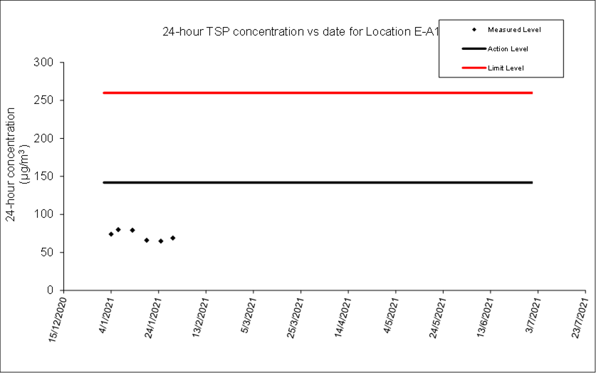 A.7 No exceedance of the Action and Limit Levels of 24-hour TSP and 1-hour TSP monitoring were recorded during the reporting month.