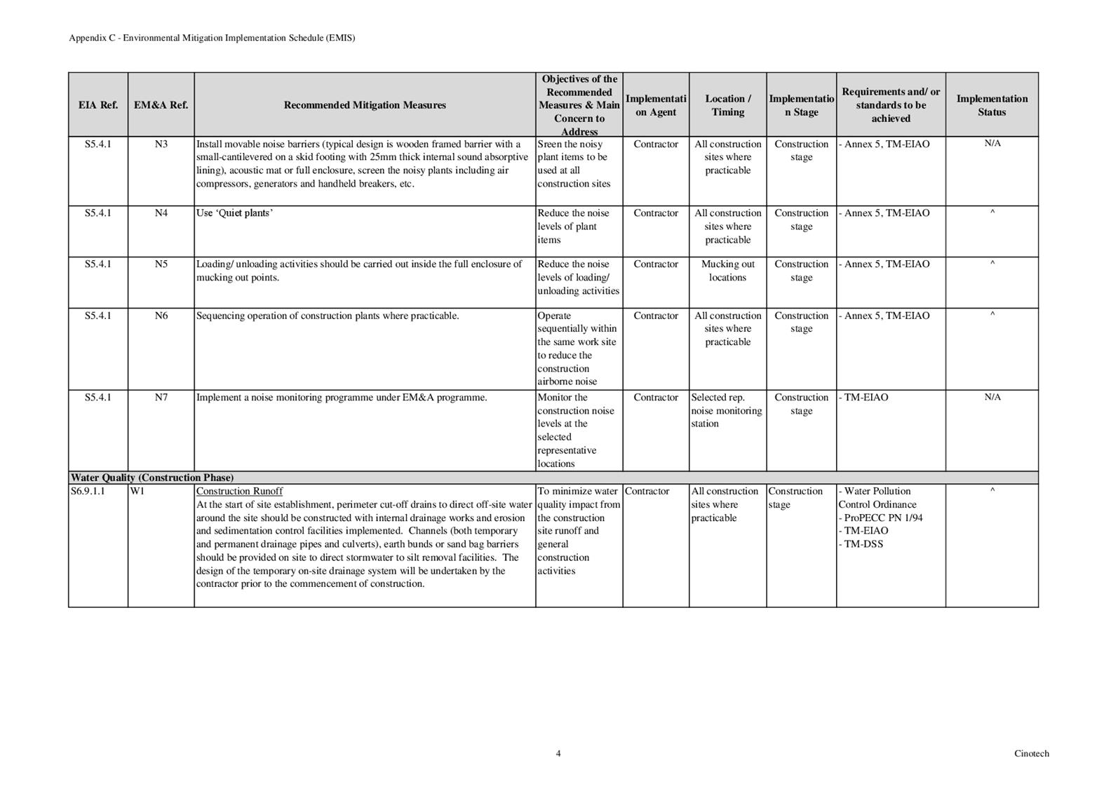 6.3 According to Environmental Permit, the approved EIA Report (Register No.: AEIAR-171/2013), and the EM&A Manual of the Project, the mitigation measures detailed in the documents are recommended to be implemented during the construction phase. An Environmental Mitigation Implementation Schedule (EMIS) is provided in Appendix C.