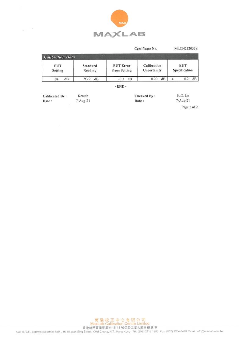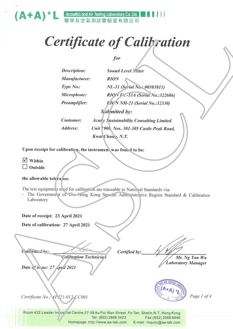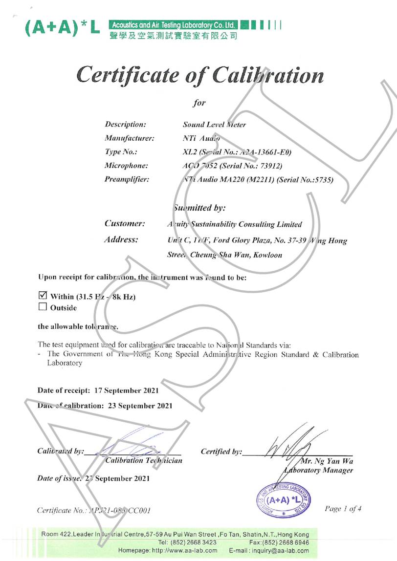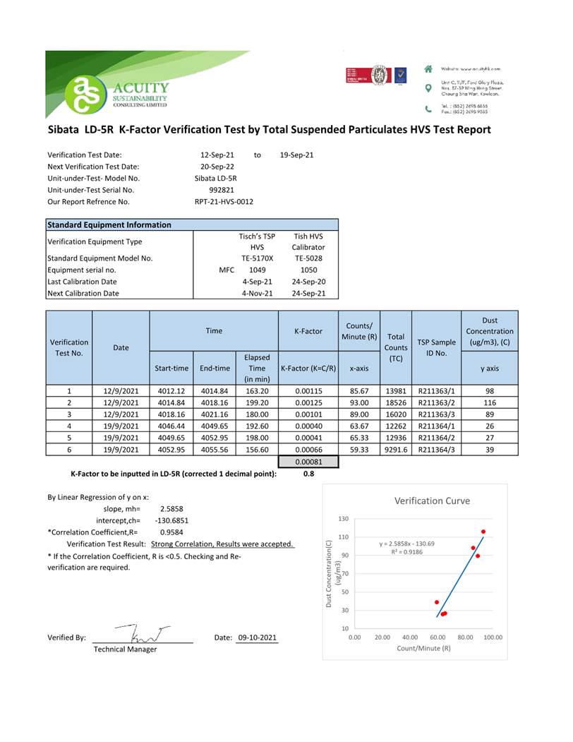 J.      The Certification of Laboratory with HOKLAS Accredited Analytical Tests