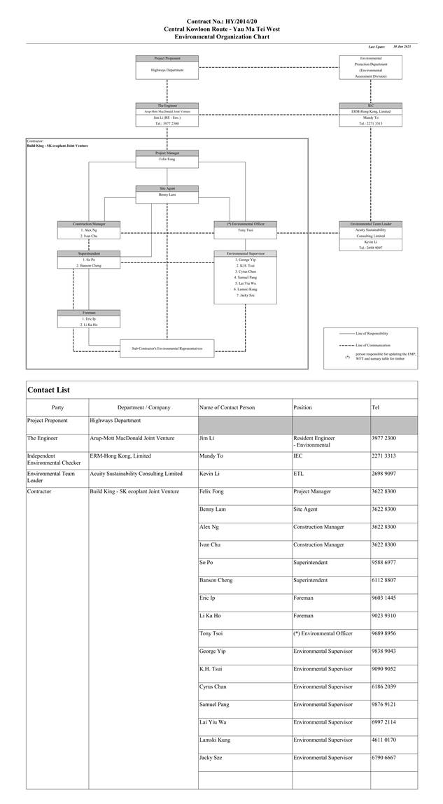 1.3. The construction of the CKR had been divided into different sections. This Contract No. HY/2014/20 – Section of Yau Ma Tei West (YMTW) covers part of the construction activities located at Yau Ma Tei under the EP which includes: