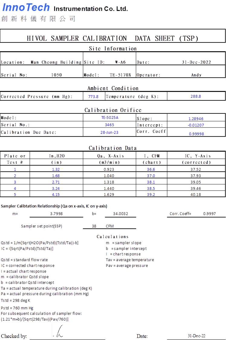 H. Calibration Certificate (Air Monitoring)