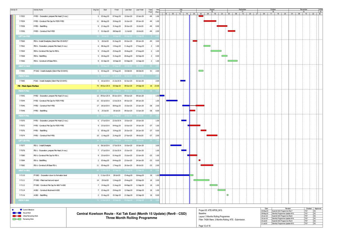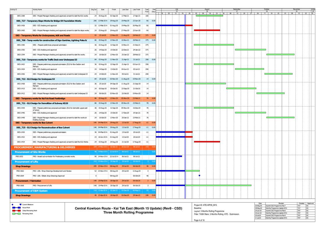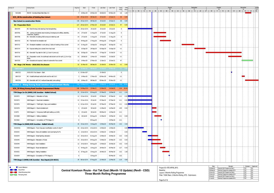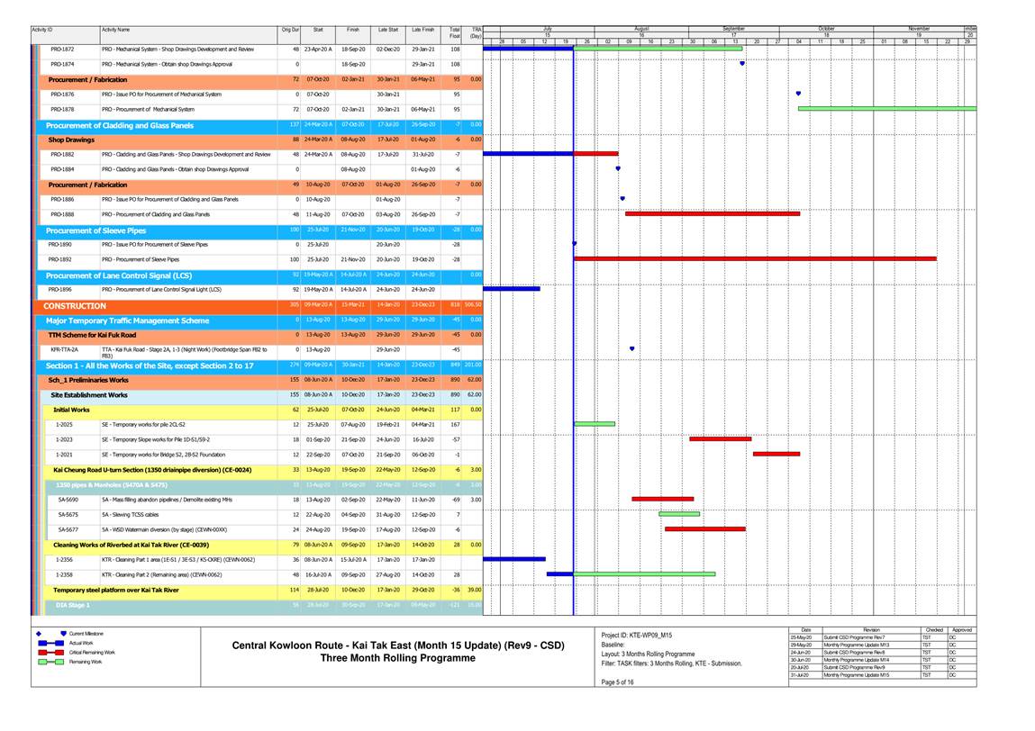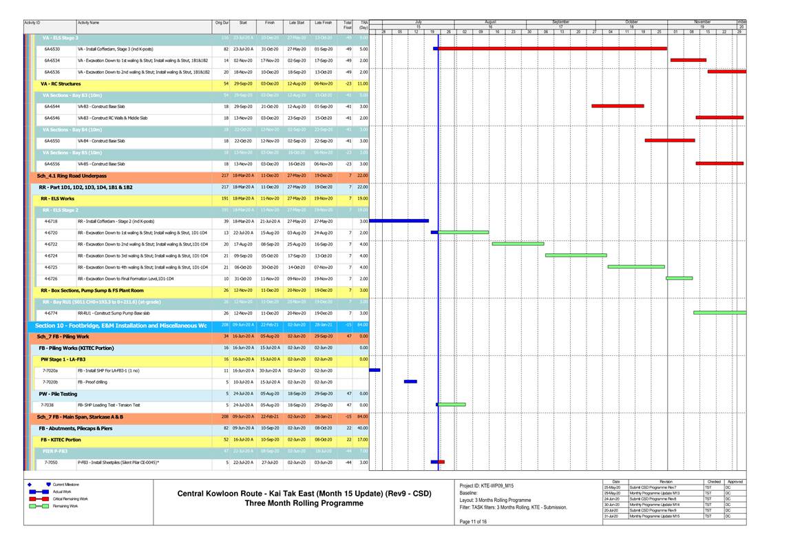 1.4. A summary of major construction activities provided by the Contractor in this reporting period is shown in Table 1.1. The construction programme is presented in Appendix B.