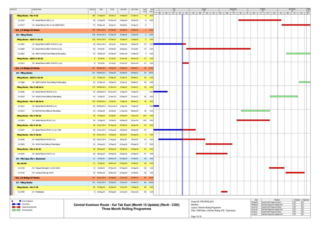 · Ground Investigation at Portion 2B & 3B & Kai Cheung U Turn & Kai Cheung Loop Road. · Bored Pile at Portion 1A, 2B & 3B. · Foundation Work for the Foot Bridge at Kai Fuk Road. · Sheetpiling Works for Adit at Area 1D3. · Sheetpiling Works for Underpass at Portion 3B. · Construction of Marine Platform at Kai Tak Nallah. |
