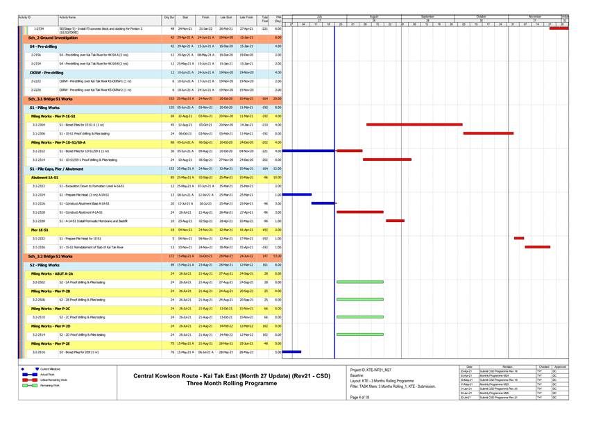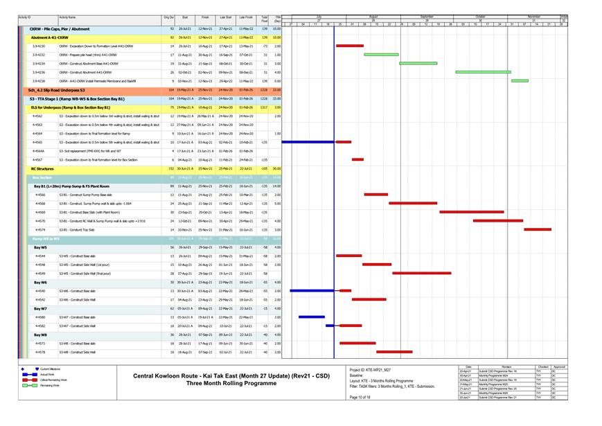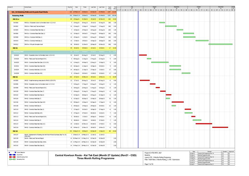 1.4. A summary of major construction activities provided by the Contractor in this reporting period is shown in Table 1.1. The construction programme is presented in Appendix B.