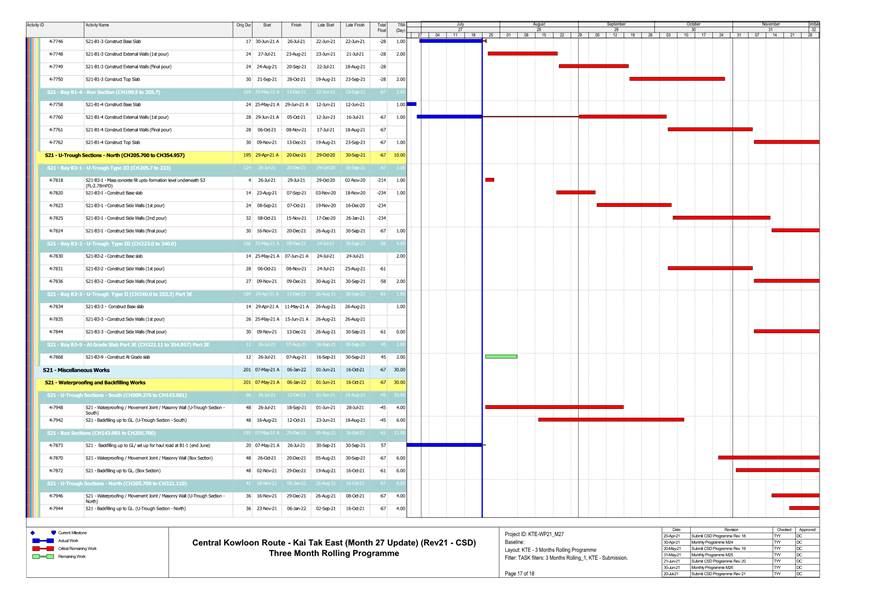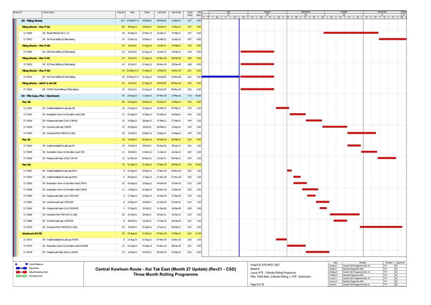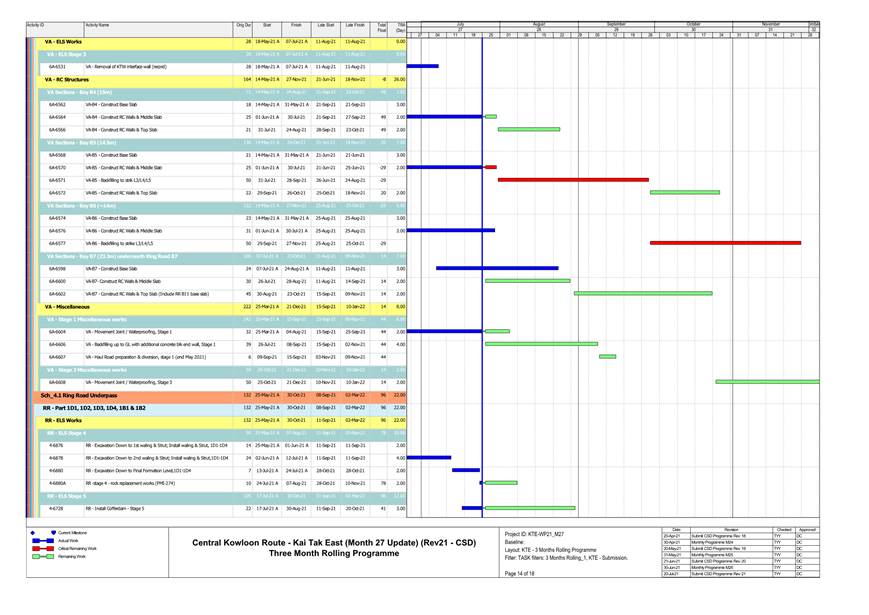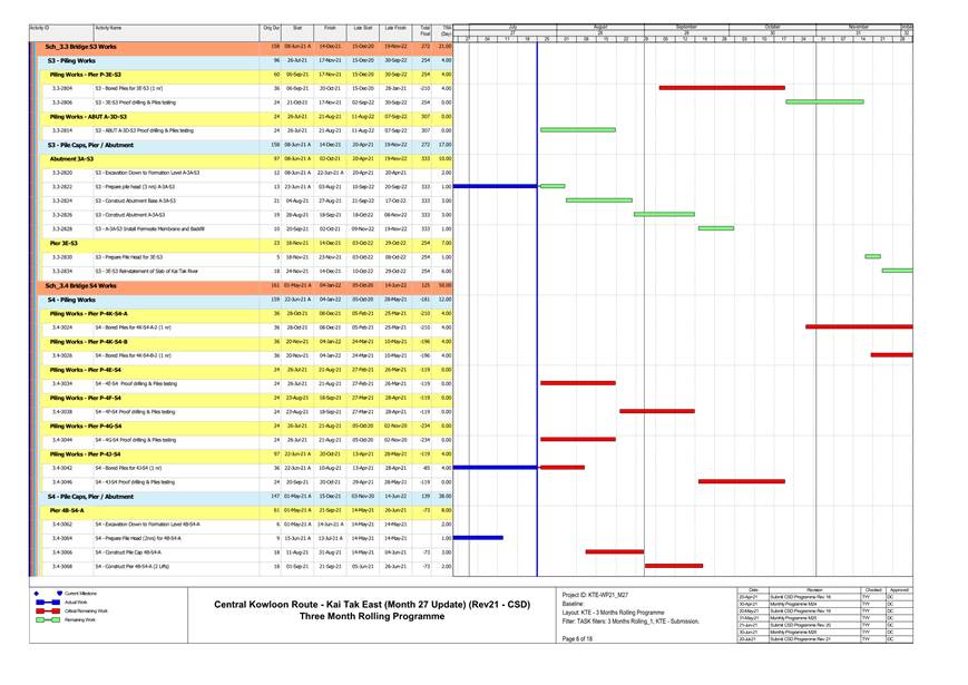 1.4.      A summary of major construction activities provided by the Contractor in this reporting period is shown in Table 1.1. The construction programme is presented in Appendix B.