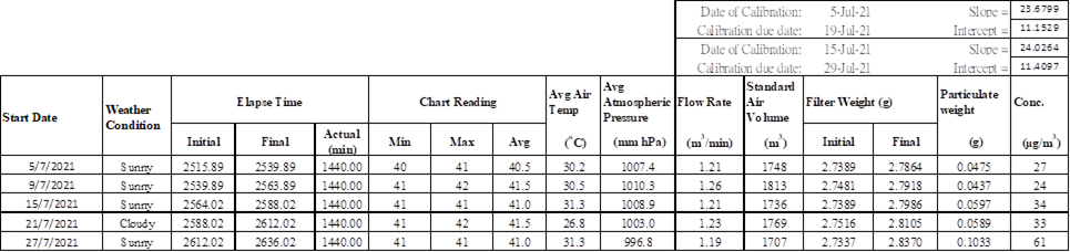 B.2 No Action/Limit Level exceedance was recorded for all 1-hour TSP and 24-hour TSP monitoring in the reporting month.