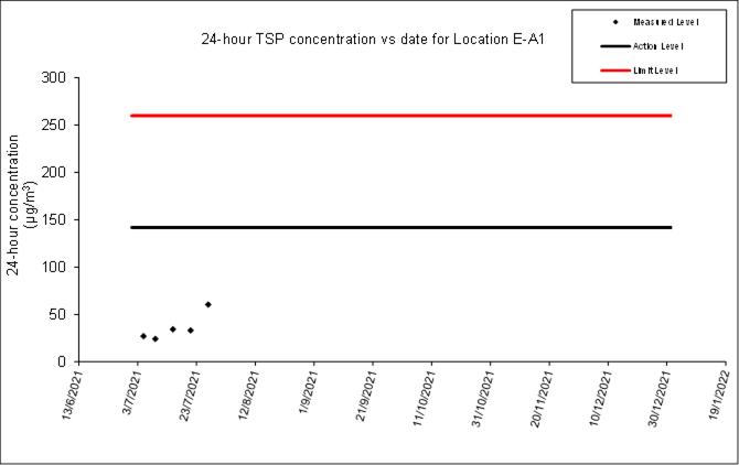 A.7 No exceedance of the Action and Limit Levels of 24-hour TSP and 1-hour TSP monitoring were recorded during the reporting month.