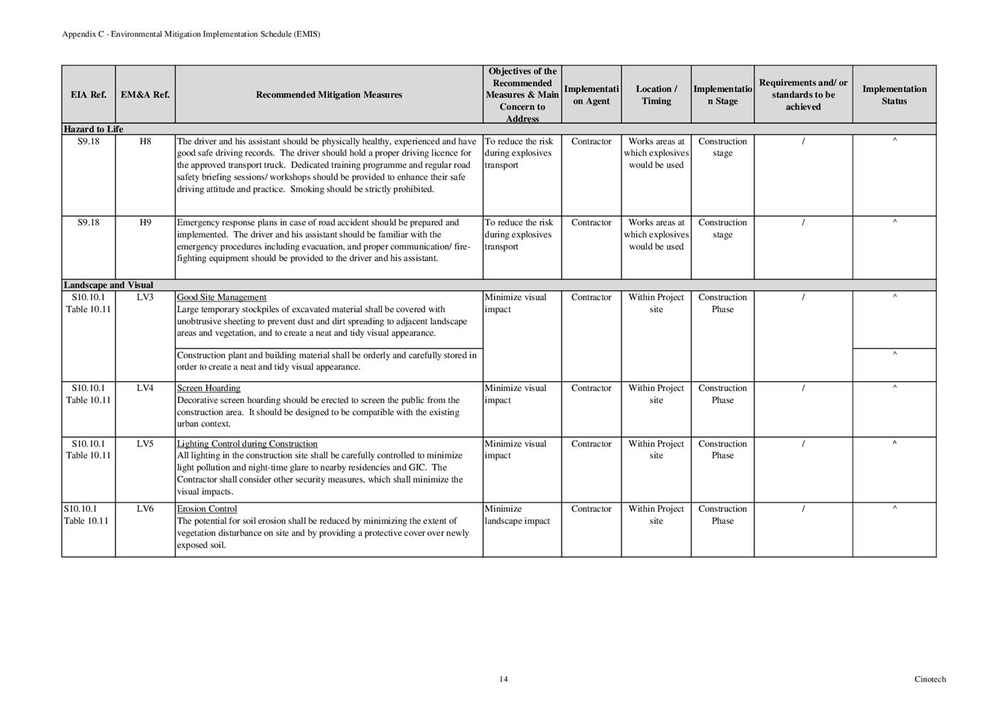 F.     Environmental Mitigation Implementation Schedule (EMIS)